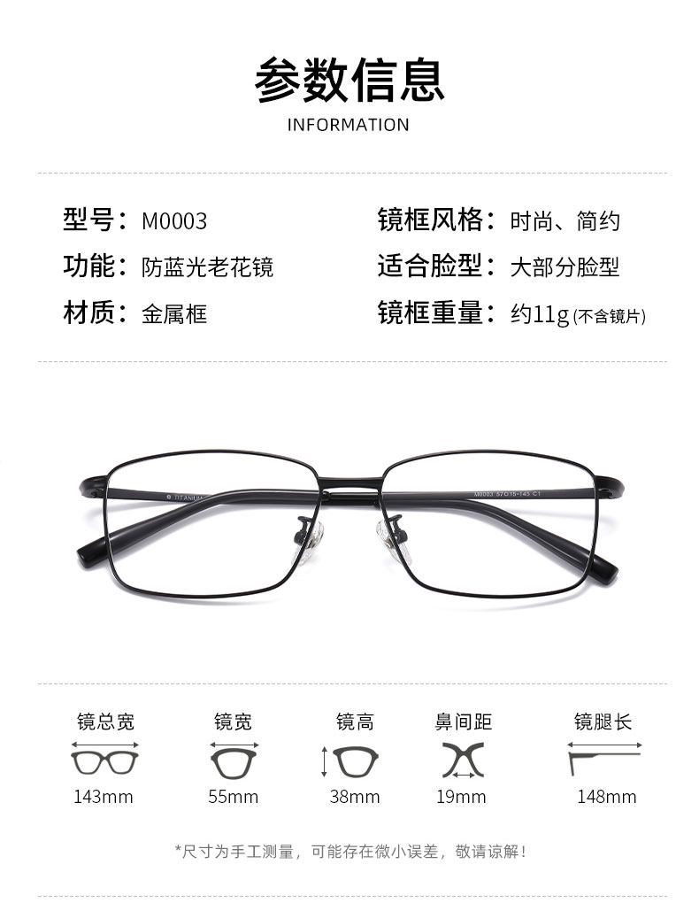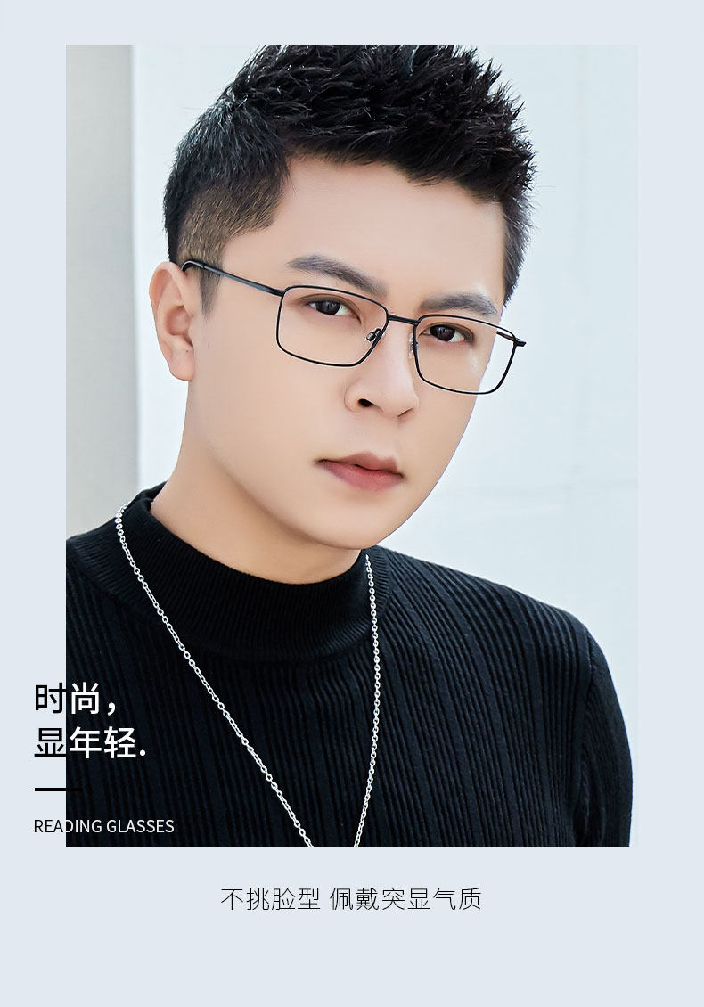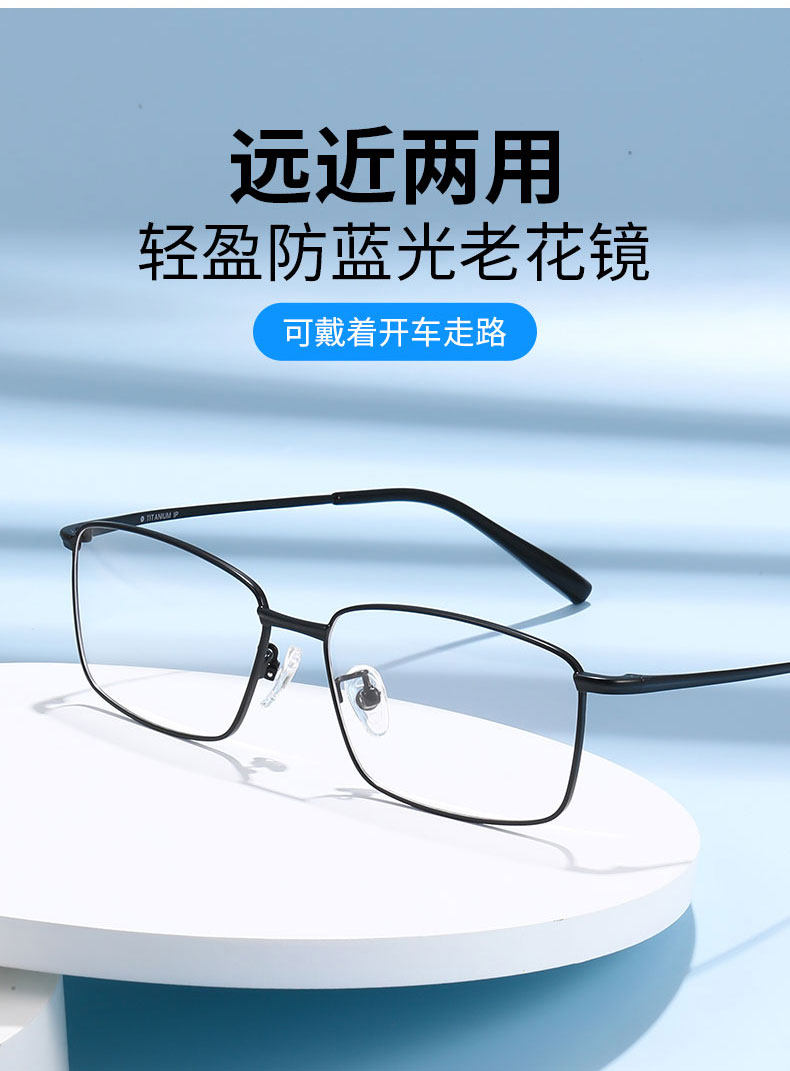 Pure Titanium Ultra-Light Reading Glasses for Men, High-Definition, Anti-Blue Light Reading Glasses for Middle-Aged and Elderly Men, Presbyopic Glasses for Men, Can Be Customized with Prescription