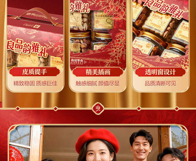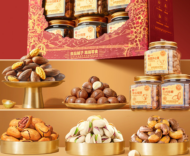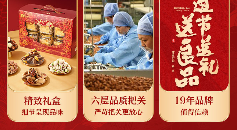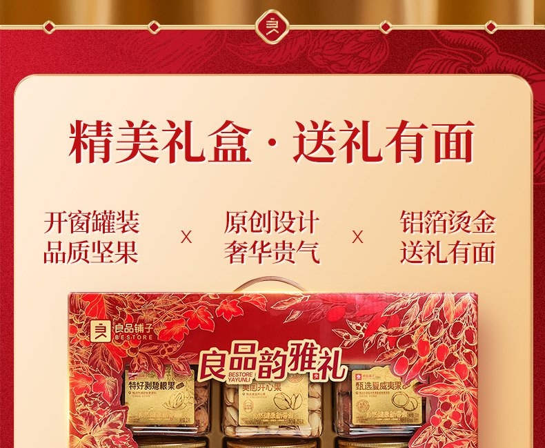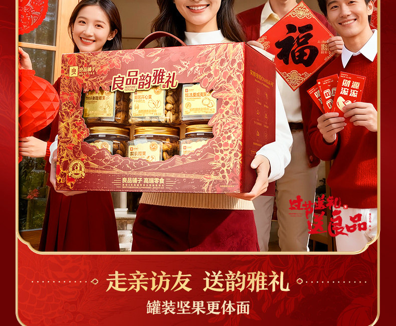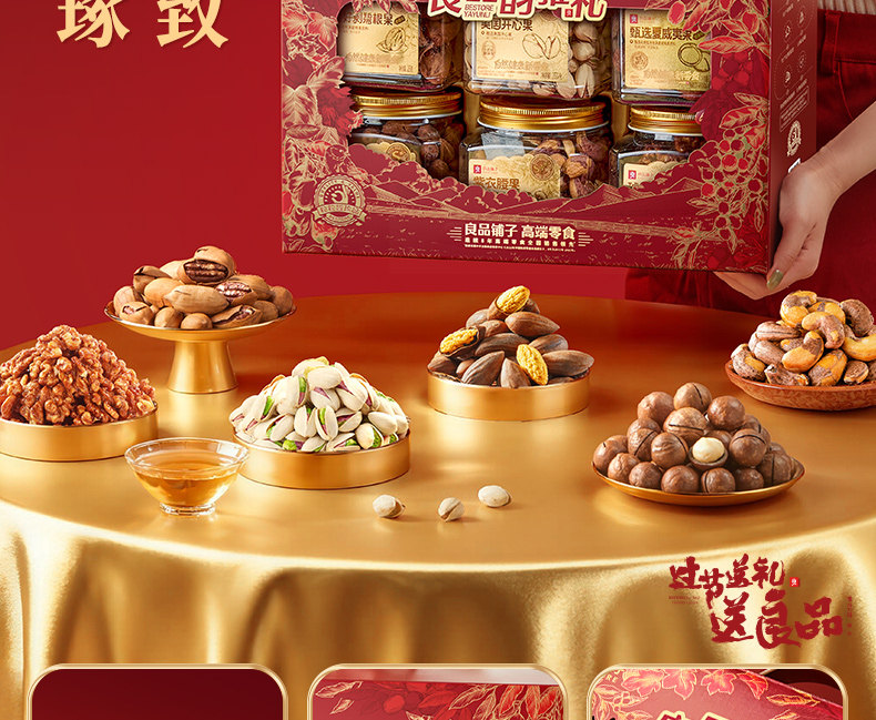 Bestore New Year's Nut Gift Box Large Pack 6 Cans/1515G Food Gift for Elders and Relatives
