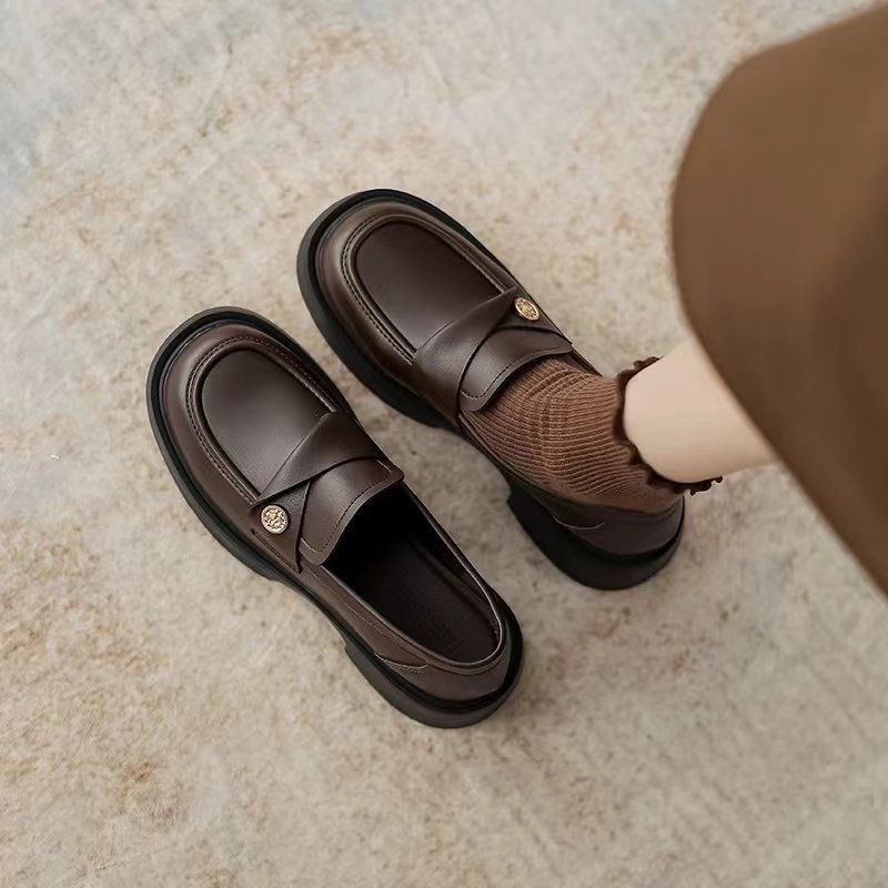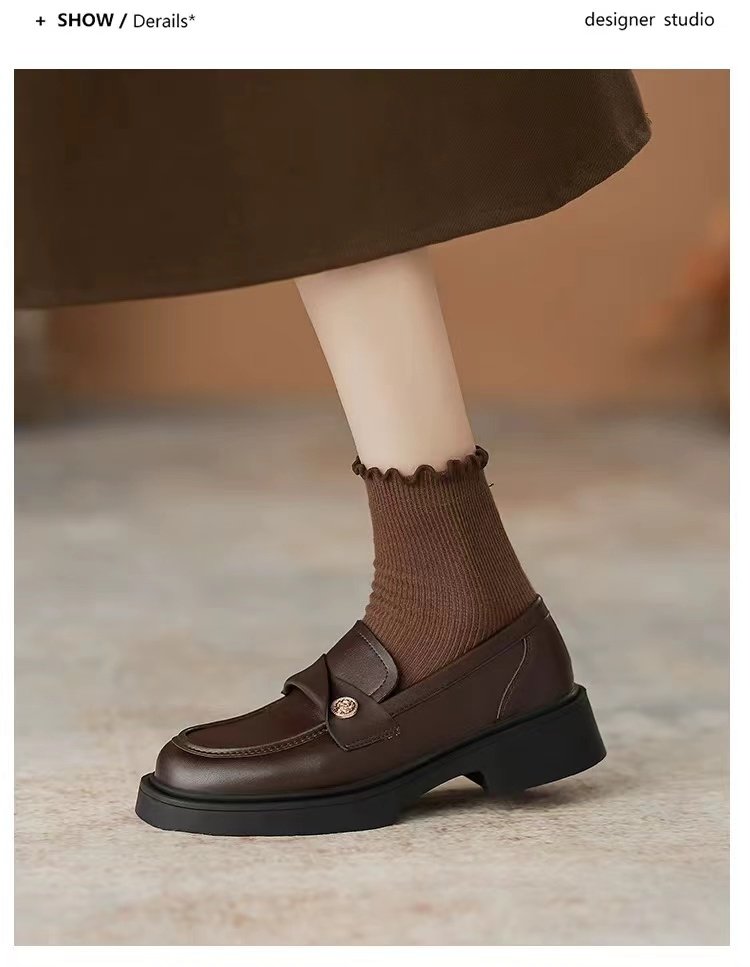 Genuine Soft Leather Coin Loafers for Women, Retro 202 Spring New Style British Flat Shoes, Slip-On Small Leather Shoes for Women