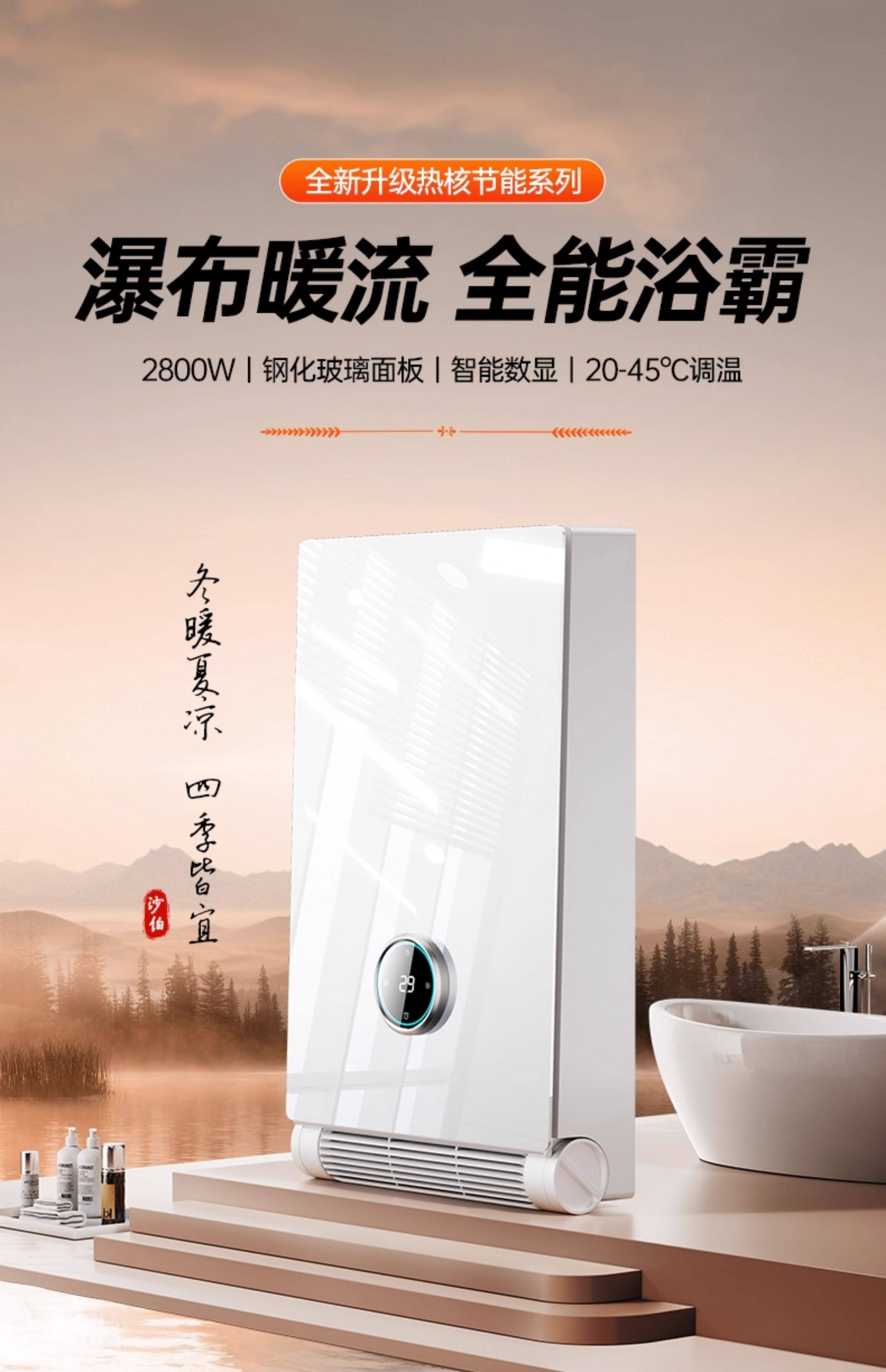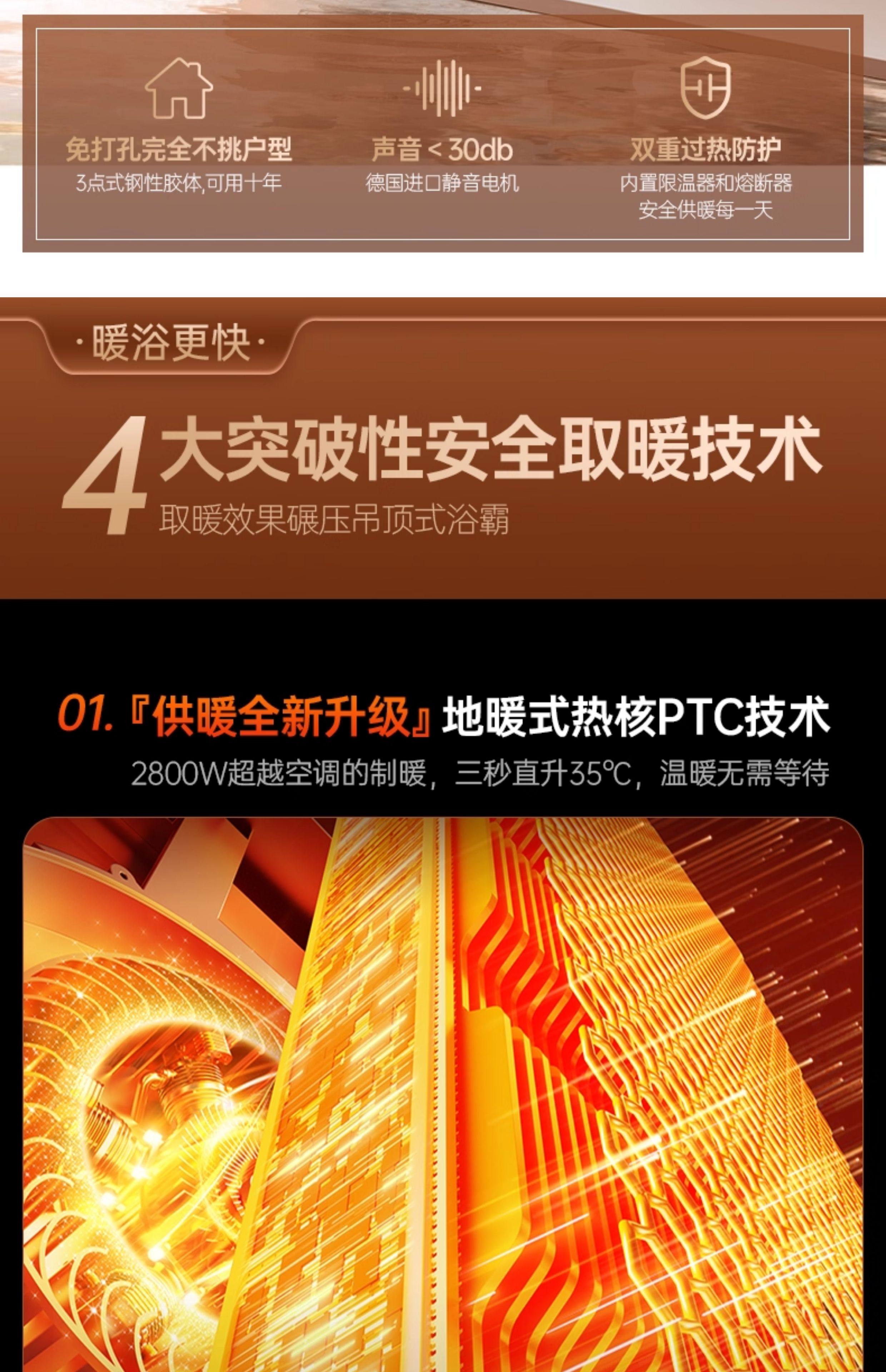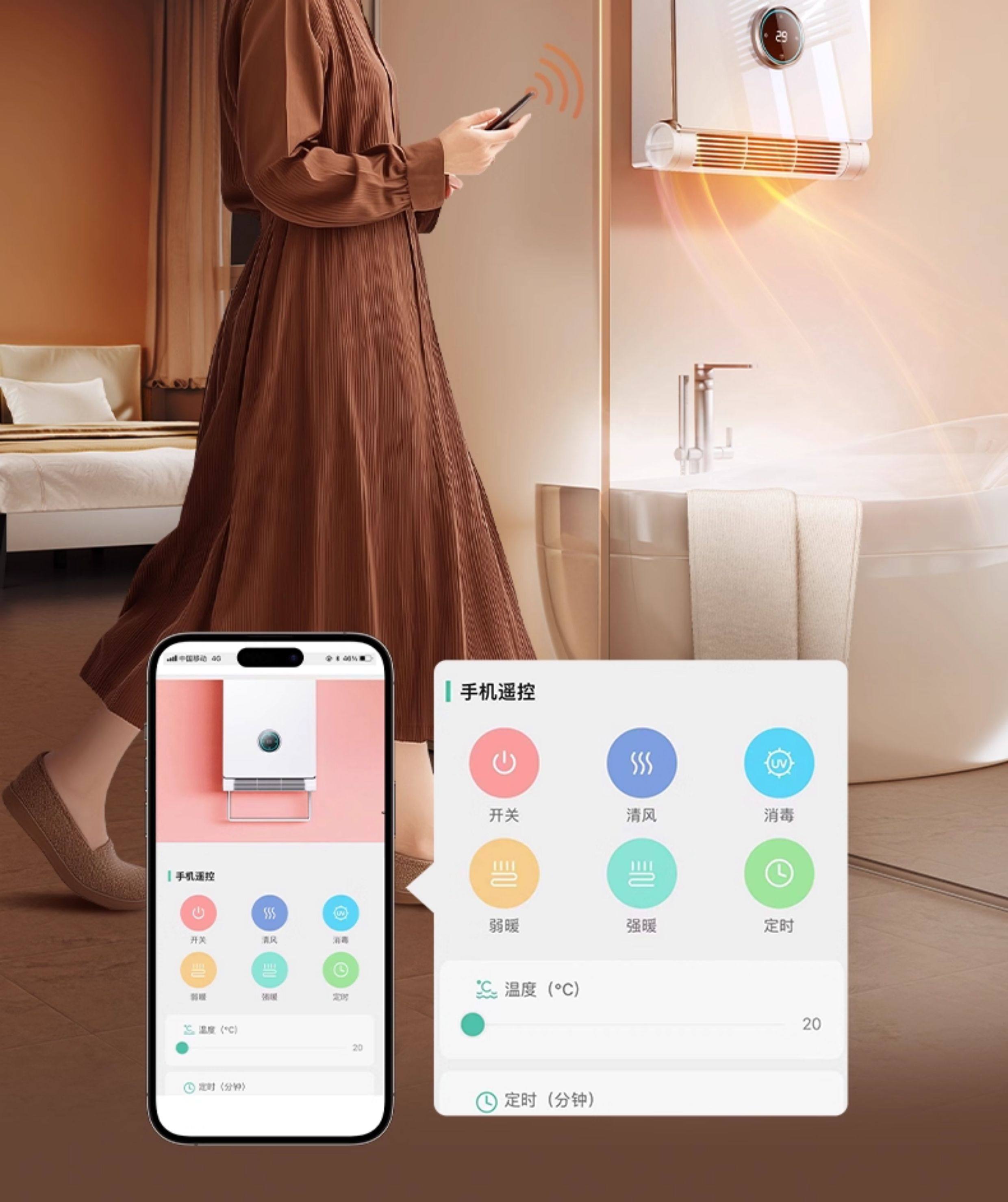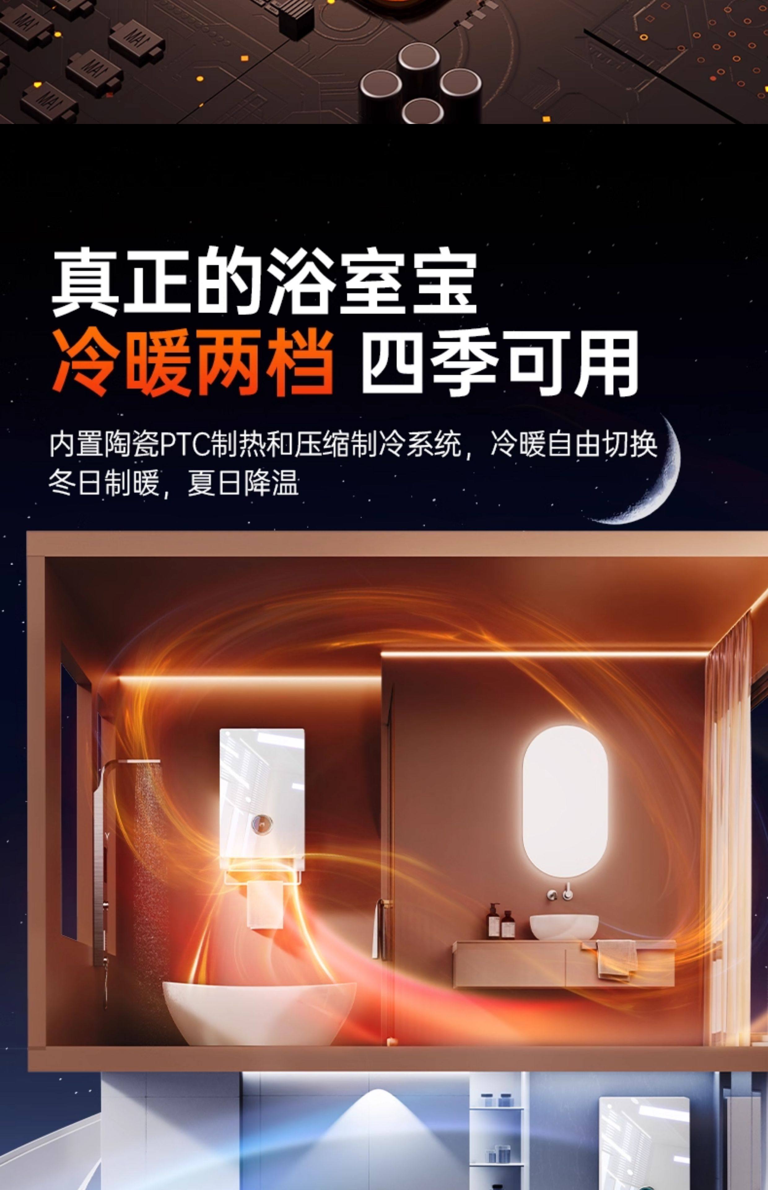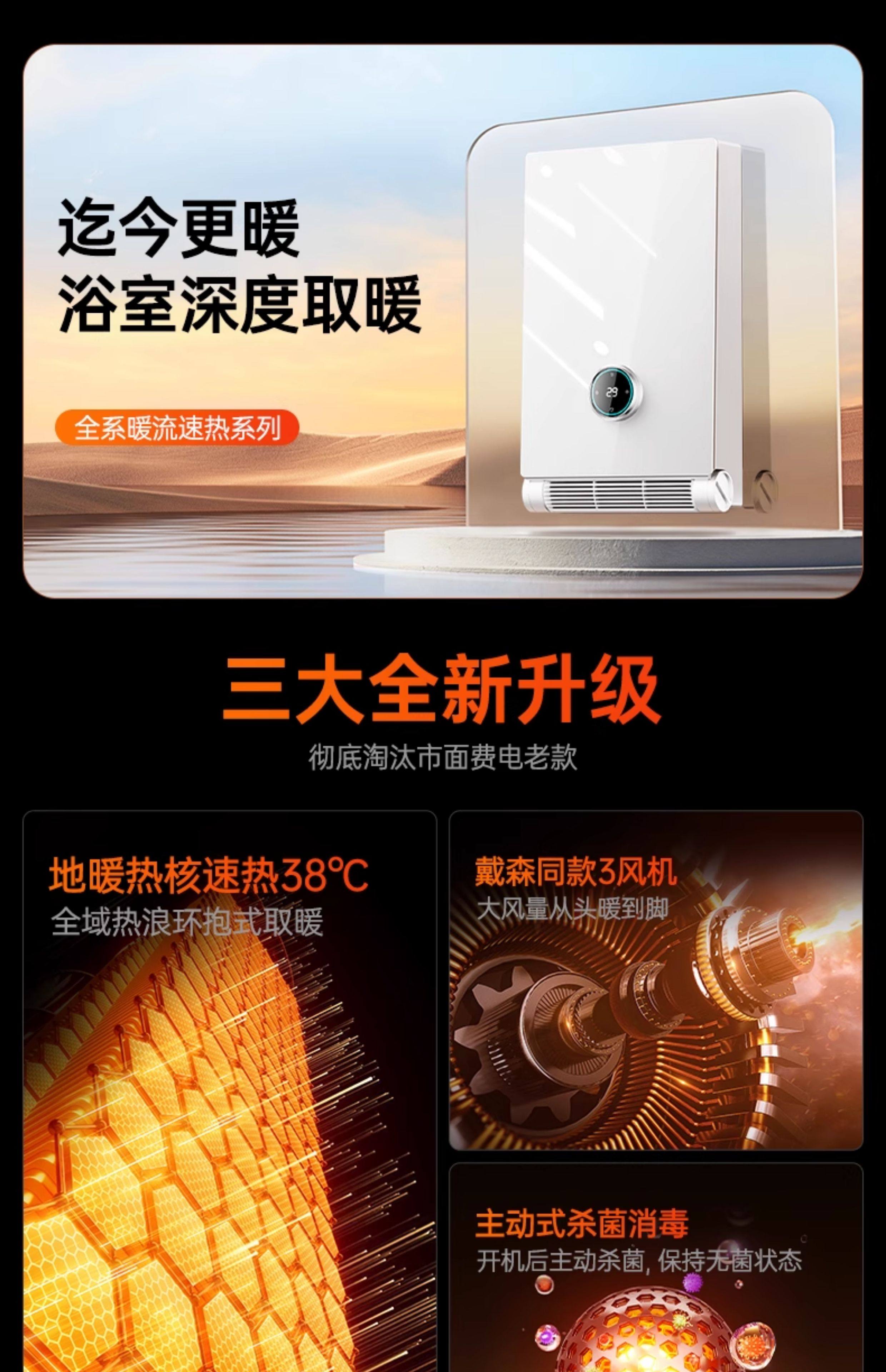 Energy-Saving Bathroom Heater] Wall-Mounted Heater, Bathroom Fan Heater, Air Heating, Waterproof, Drying, Multi-Functional, No Drilling Required