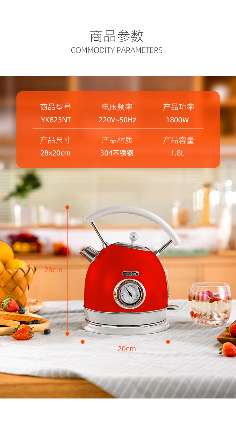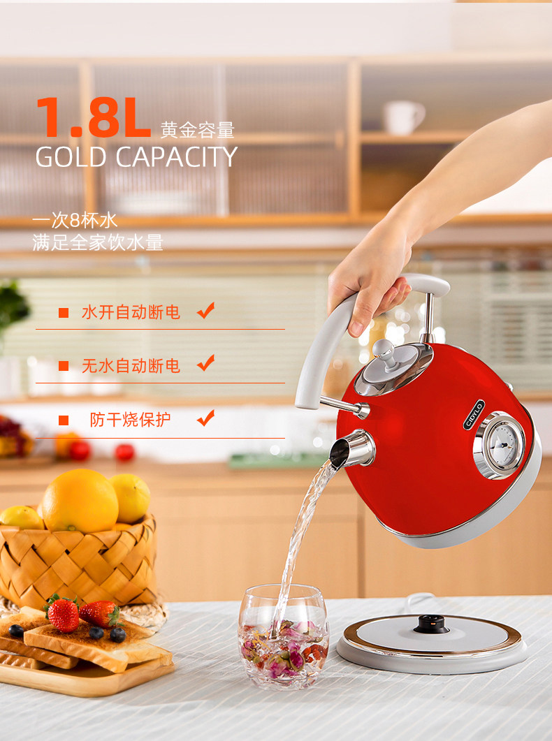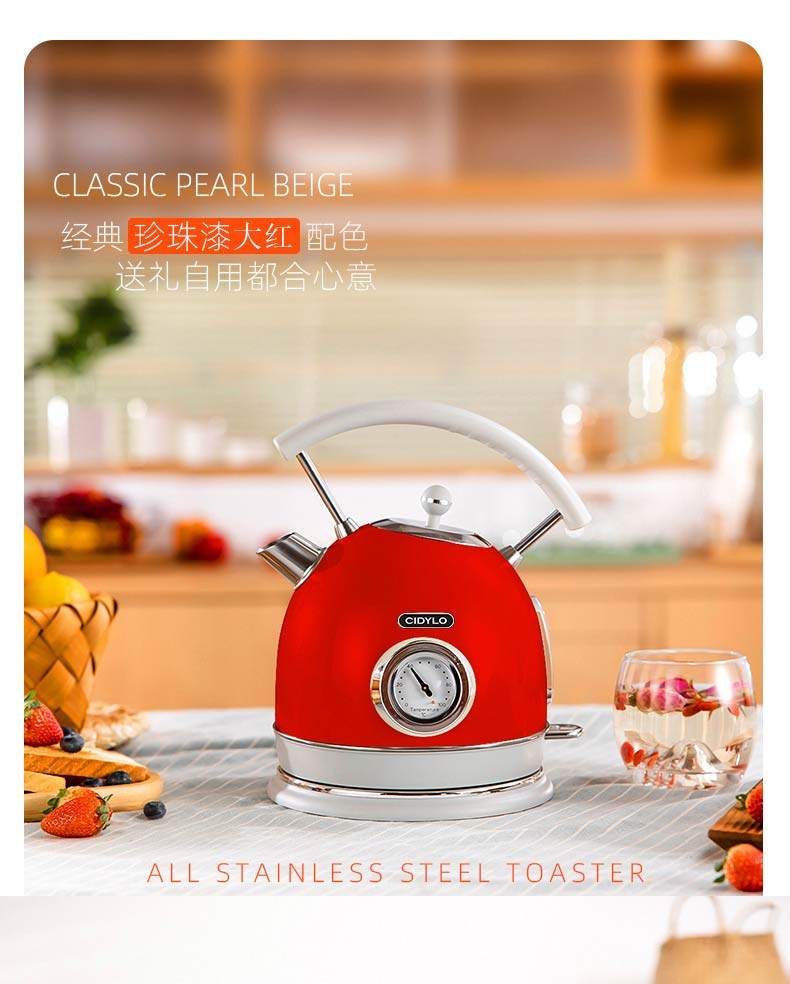 British Cidylo Electric Kettle with Integrated Insulation, Retro-Style Household Constant Temperature Smart Electric Kettle 1.8L
