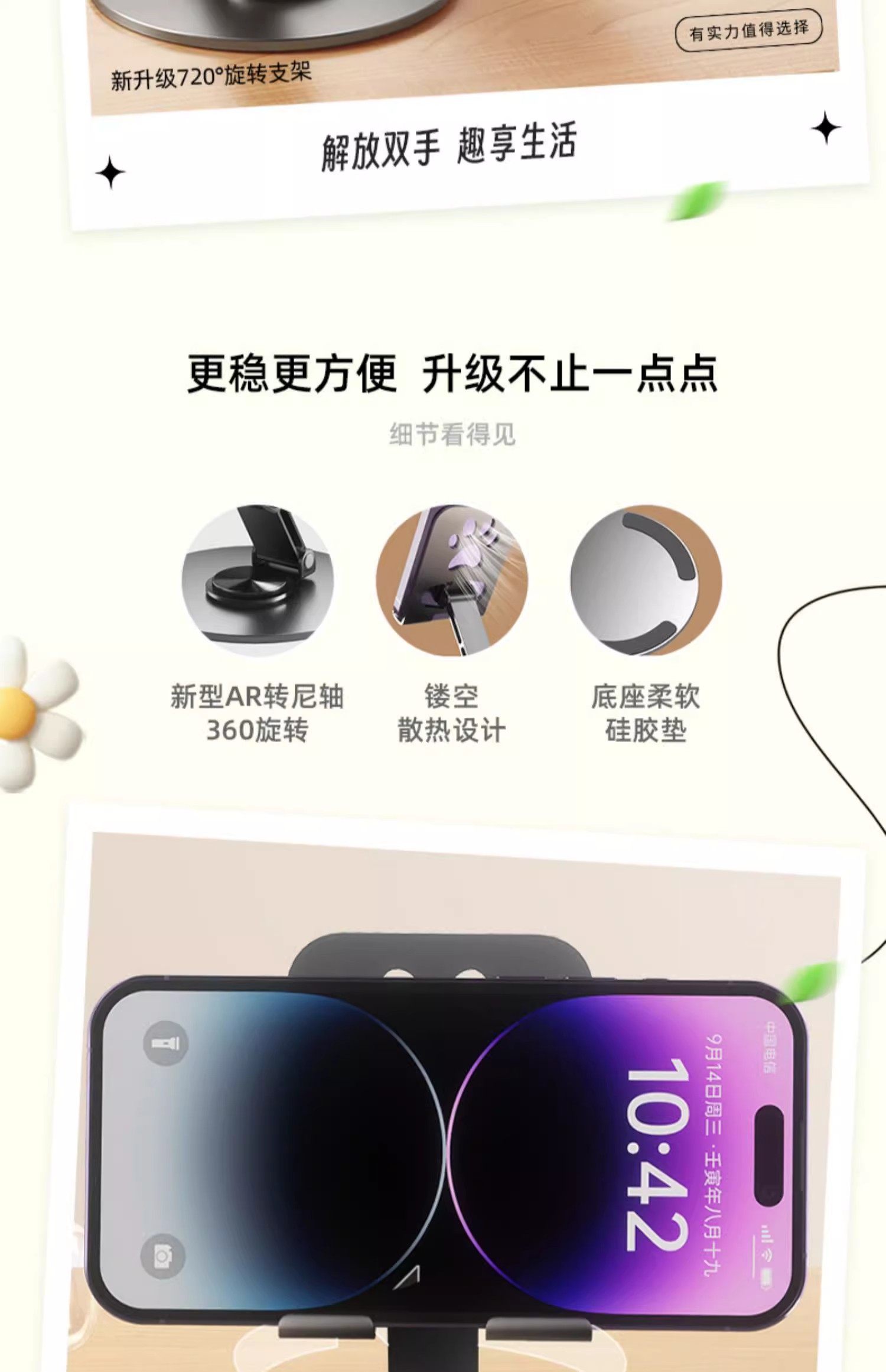| Color Classification | Dark Night[Fold_Rotate]Base Metal,Athens White[Fold_Rotate]Base Metal,Space Gray[Foldable Ar Rotation](All Metal) Cat Claw Bracket,Advanced Purple[Folding_Mechanical Rotation](All Metal),Space Gray[Folding_Mechanical Rotation](All Metal),Quiet Purple[All Metal]Three Axis 720°Rotate/Fold/Lift,Deep Black[All Metal]Three Axis 720°Rotate/Fold/Lift,Loss Momentum: Mcdangdang Mobile Phone Creative Stand*1 |
