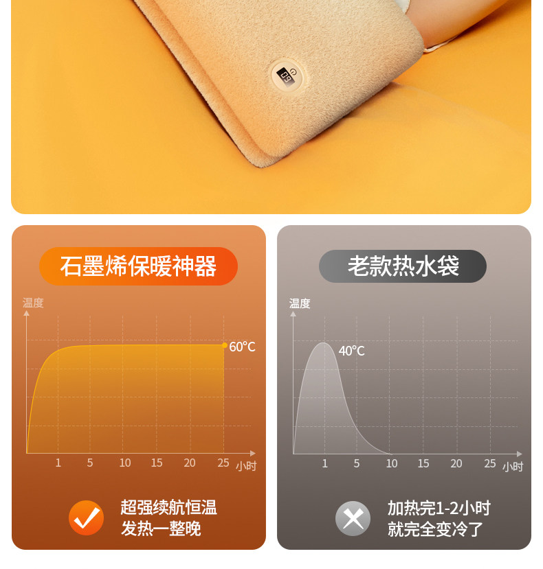 Graphene Hot Water Bottle Hand Warmer 2026 New Model Rechargeable Waterless Baby Warmer Explosion-Proof Hot Water Bag Foot Warmer Gadget