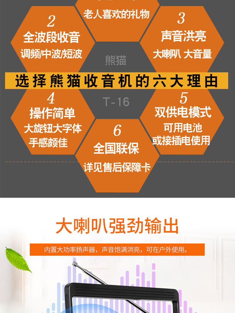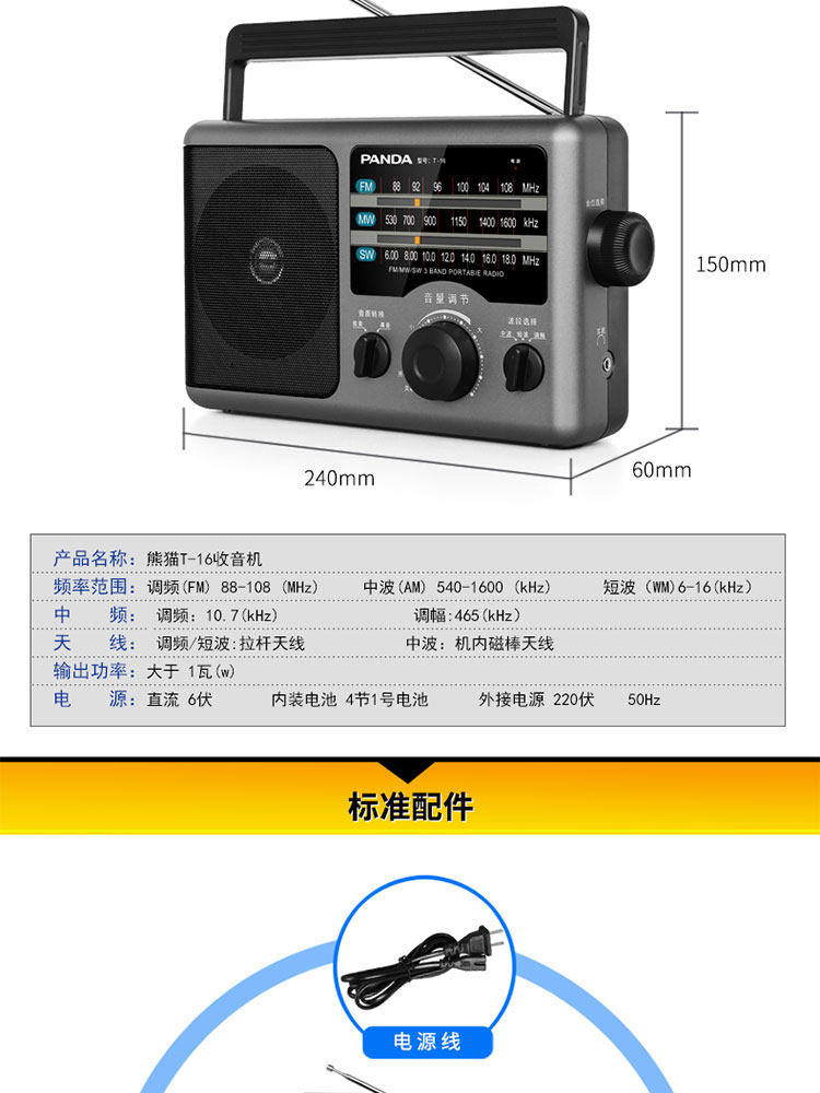 Panda Radio for the Elderly, Full-Band, High Volume, Simple Dial, Gift for Seniors, Plug in and Use Immediately
