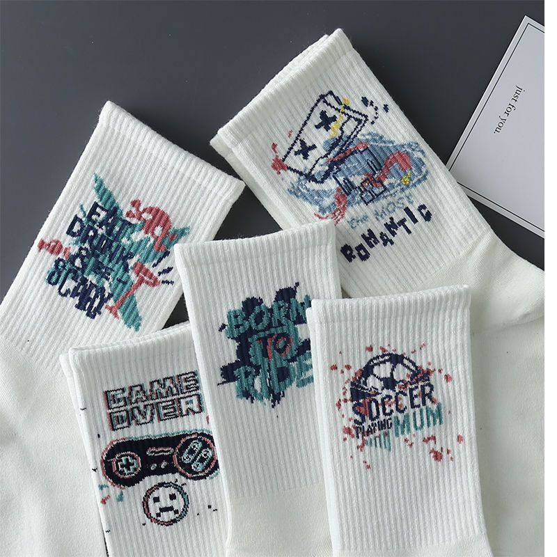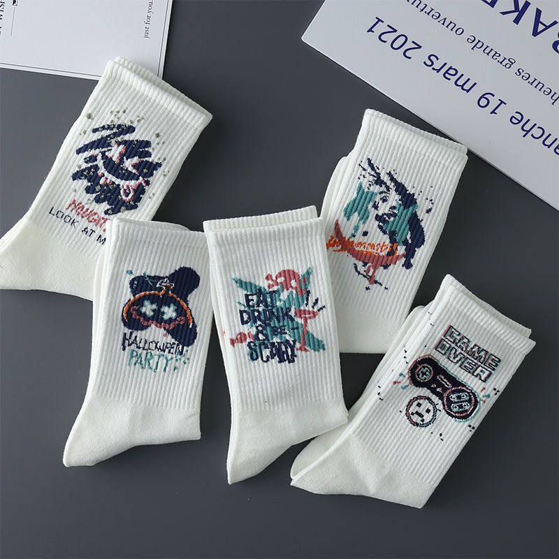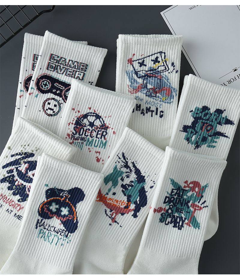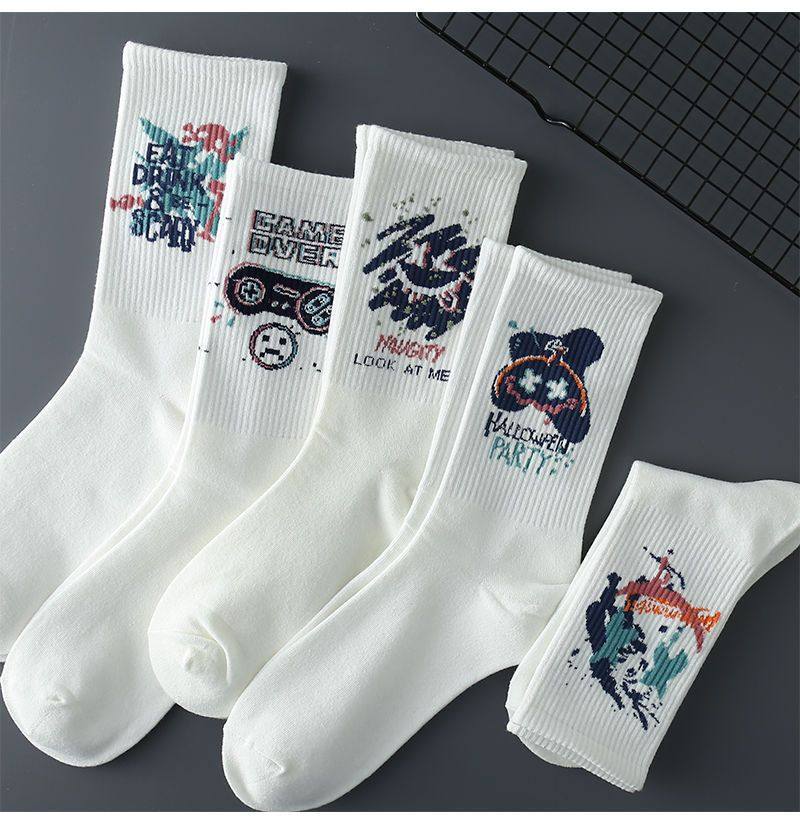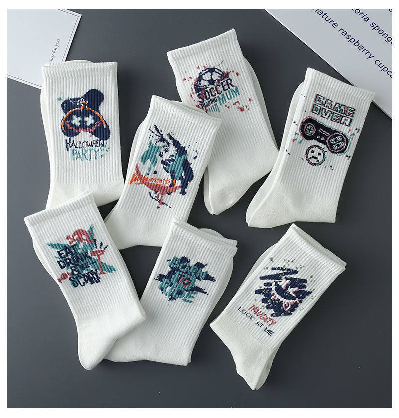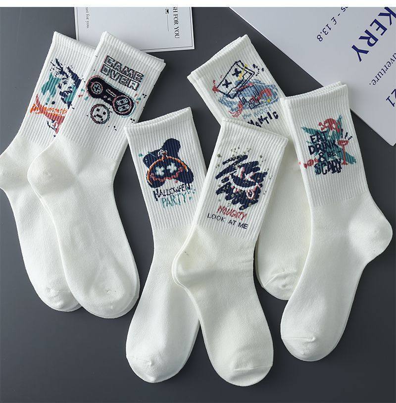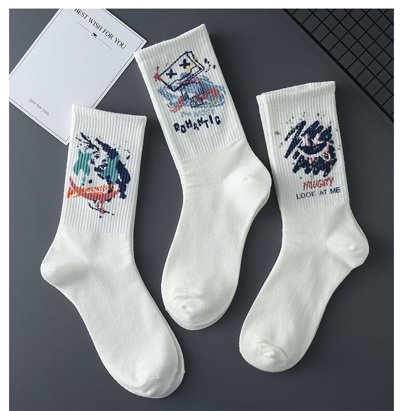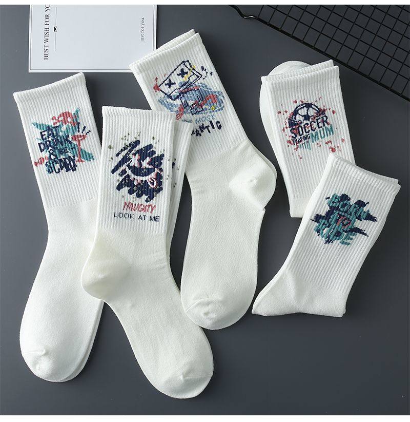 2025 New Graffiti Socks Men's Long Socks ins Trendy Cotton Socks Autumn Junior High School Students Mid-Tube Boys' Youth Basketball Socks
