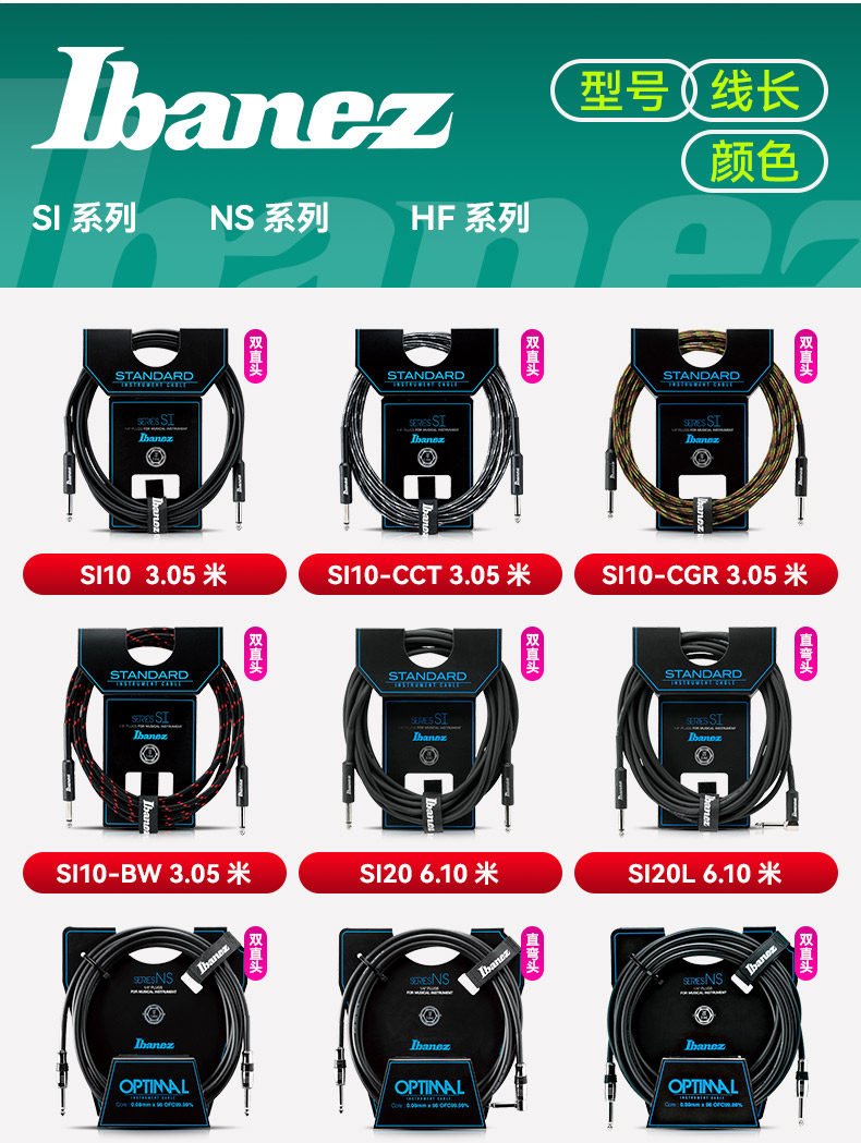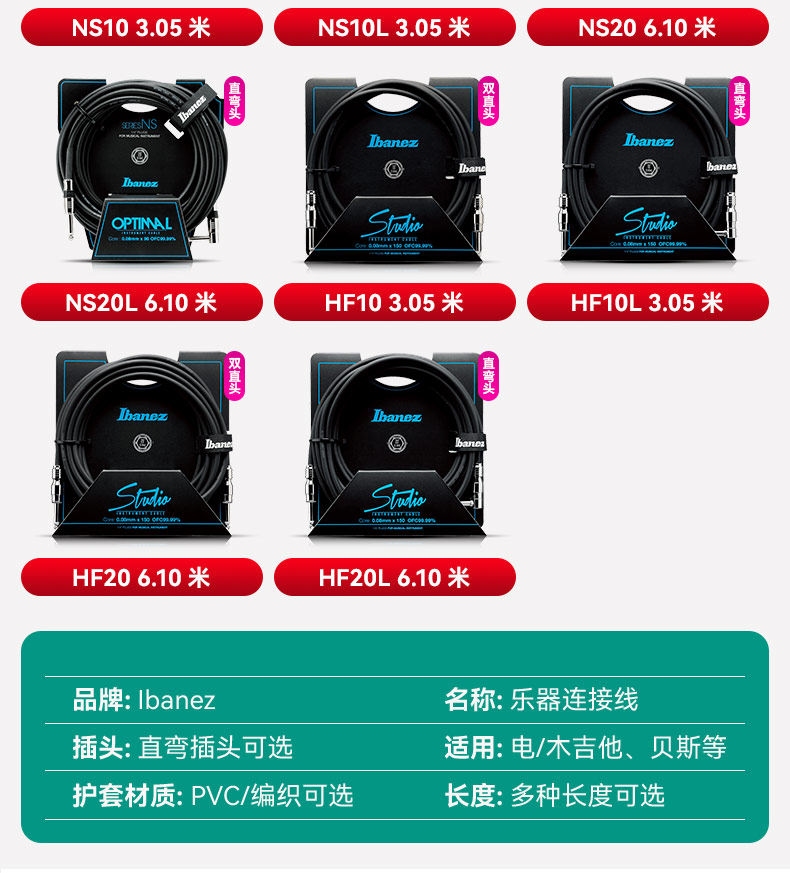 Ibanez Electric Guitar Cable Hf/Ns/Si Folk Bass Dedicated Audio Cable Speaker Noise Reduction Cable
