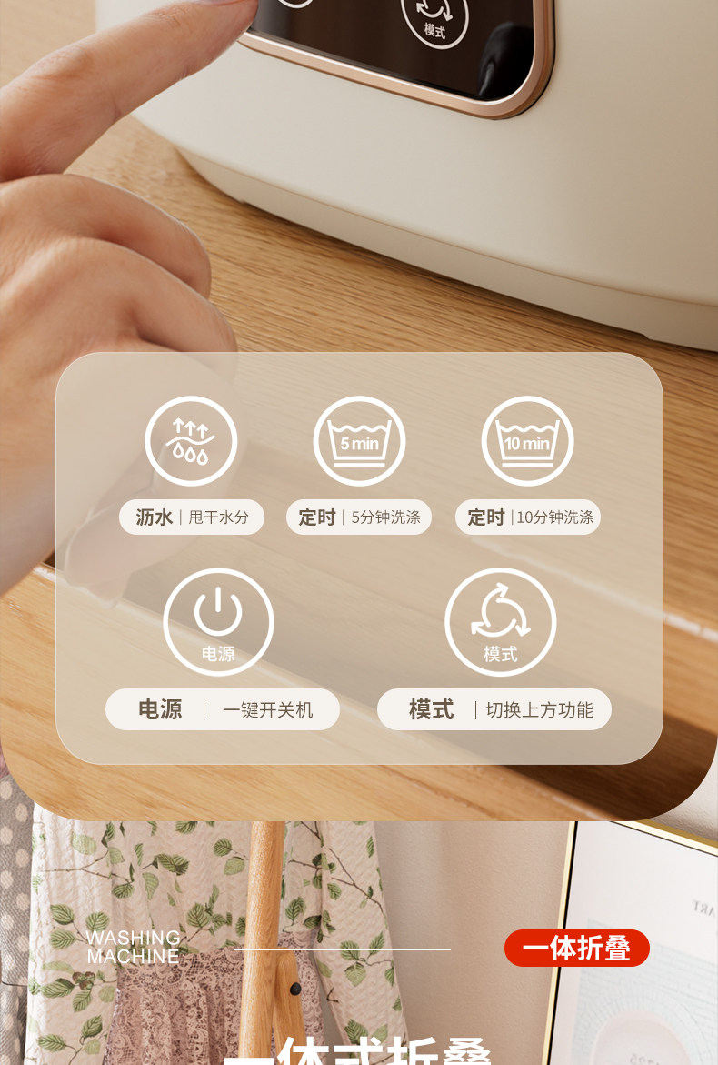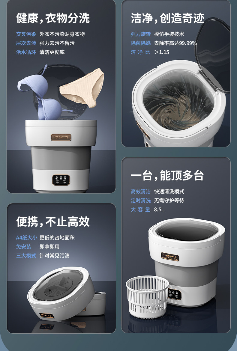 Underwear Washing Machine, Fully Automatic Washing and Drying, Integrated, for Home and Dormitory Use, Special for Underwear, Socks, Children's Use, Foldable, Small and Mini
