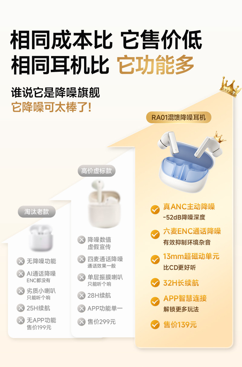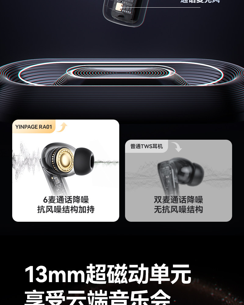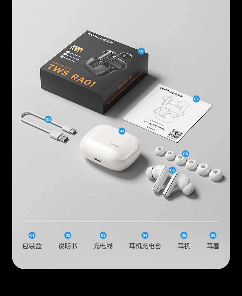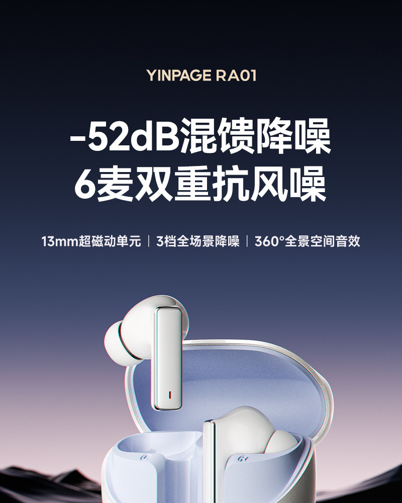Yinbeiqi Ra01 Active Noise-Cancelling Bluetooth Earphones, In-Ear True Wireless 2026 New Model, High Sound Quality, Long Battery Life