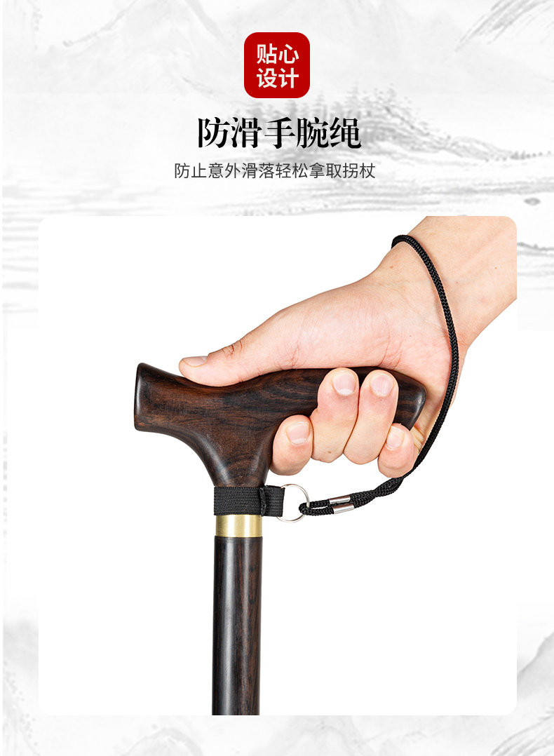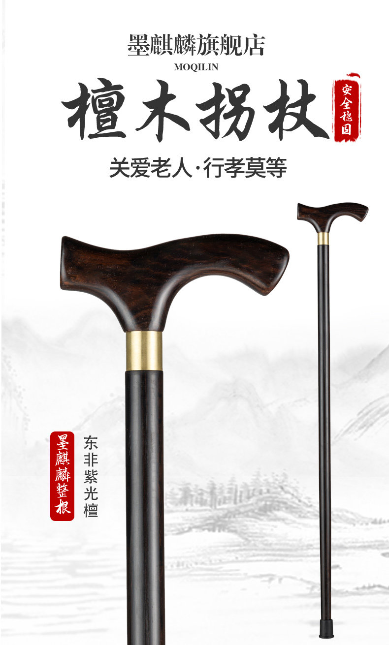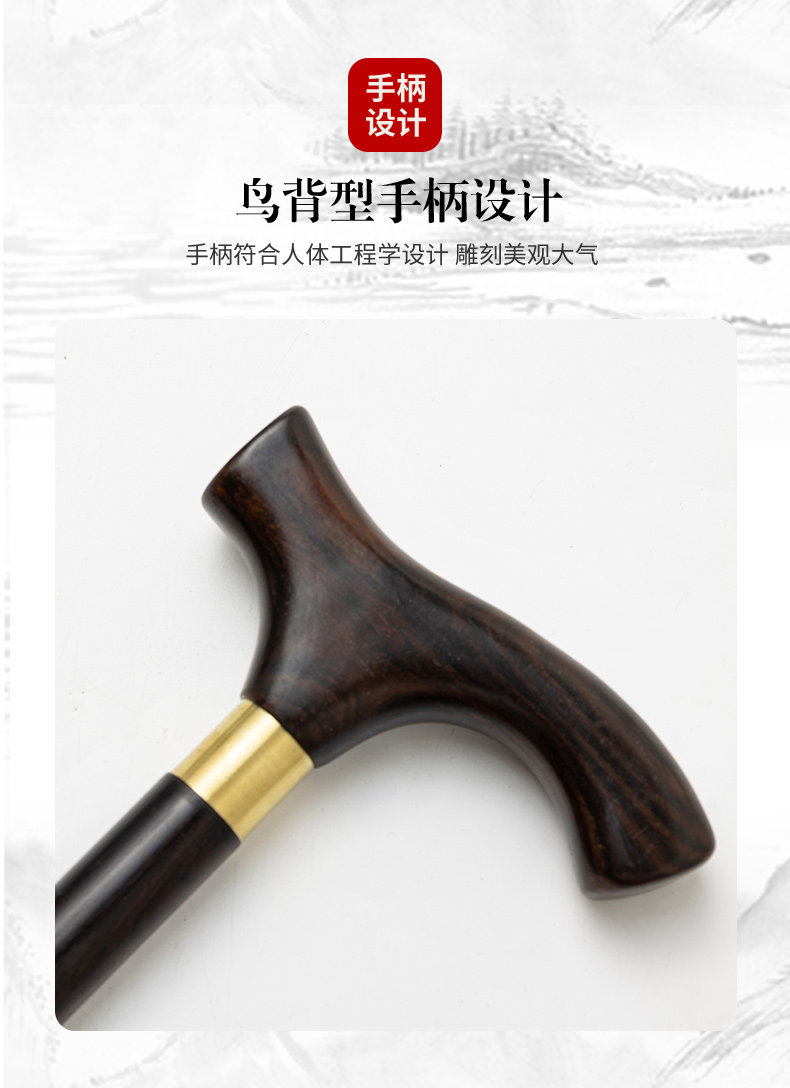 Ebony Walking Stick for the Elderly, Purple Sandalwood, Rosewood Walking Stick, Solid Wood Cane, Non-Slip Wooden Walking Stick for Seniors