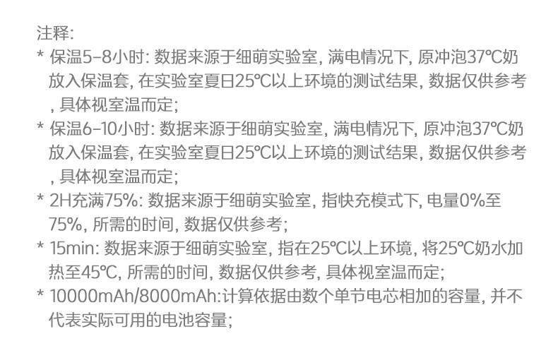 | Color Classification | 5Th Generation [10000Mah Extended Battery Life] Wireless Rapid Heating + Extended Battery Life + 18W Fast Charging + Visible Milk Level Window + Charge & Use,5Th Generation [8000Mah Flagship Edition] Wireless Instant Heating + 18W Fast Charging + Charge & Use Simultaneously + Visible Milk Level Window,4Th Generation New [8000Mah Extended Battery Life Edition] Wireless Rapid Heating + Extended Battery Life + Use While Drinking,The 4Th Generation New [6000 Mah Flagship Version] Wireless Fast Heating + Fast Charging + Charging and Using at the Same Time,4Th Generation [8000Mah Flagship Edition] Wireless Instant Heat + Extended Battery Life + Fast Charging + Use While Charging,4Th Generation [6000 Mah Standard Version] USB Fast Charging + Wireless Fast Heating + Can Be Charged and Used at the Same Time,3Rd Generation [8000 Mah Flagship Version] 6-Level Temperature Adjustment/Night Light/Suitable for Conventional Bottles Such as Pigeon,3Rd Generation [6000Mah Standard Edition] 6-Level Temperature Control/Night Light/Compatible with Pigeon and Other Standard Baby Bottles,2Nd Generation [6000 Mah Digital Display] 6-Level Temperature Adjustment/Suitable for Conventional Bottles Such as Pigeon,1St Generation [5000 Mah Digital Display Version] 6-Level Temperature Adjustment/Suitable for Conventional Bottles Such as Pigeon |
