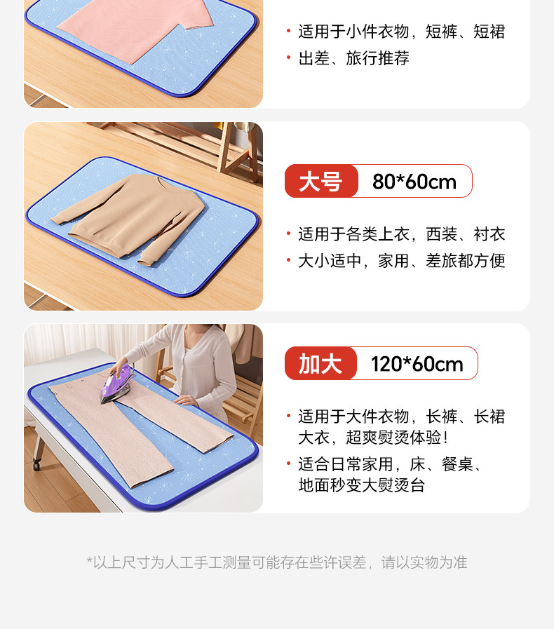| Color Classification | [The Store Thoughtfully Provides Gifts]Buy and Get 2 Free Hooks,Ironing Mat for Hanging Use,Ironing Clothes Is Easier!,[Medium Ironing Pad]★Recommended for Small Items of Clothing,[Large Ironing Pad]★Recommended Ironing Tops,[Enlarge the Ironing Pad]★ Ironing Coats and Trousers,[Two-Piece Set]Medium Ironing Pad + Iron Pad,[Two-Piece Set]Large Ironing Pad + Iron Pad,[Two-Piece Set]Large Ironing Pad + Iron Pad,[Two-Piece Set]Medium Ironing Pad + Handheld Ironing Board,[Two-Piece Set]Large Ironing Pad + Handheld Ironing Board,[Two-Piece Set]Large Ironing Pad + Handheld Ironing Board,[Three Piece Set]Medium Ironing Pad + Iron Pad + Handheld Ironing Board,[Three Piece Set]Large Ironing Pad + Iron Pad + Handheld Ironing Board,[Three Piece Set]Large Ironing Pad + Iron Pad + Handheld Ironing Board |