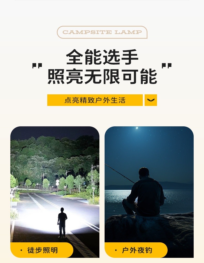 Wenwei Multifunctional Camping Lamp Rechargeable Outdoor Waterproof Magnetic Super Bright Tent Lighting Hanging Lamp Long-Lasting Camping Lamp