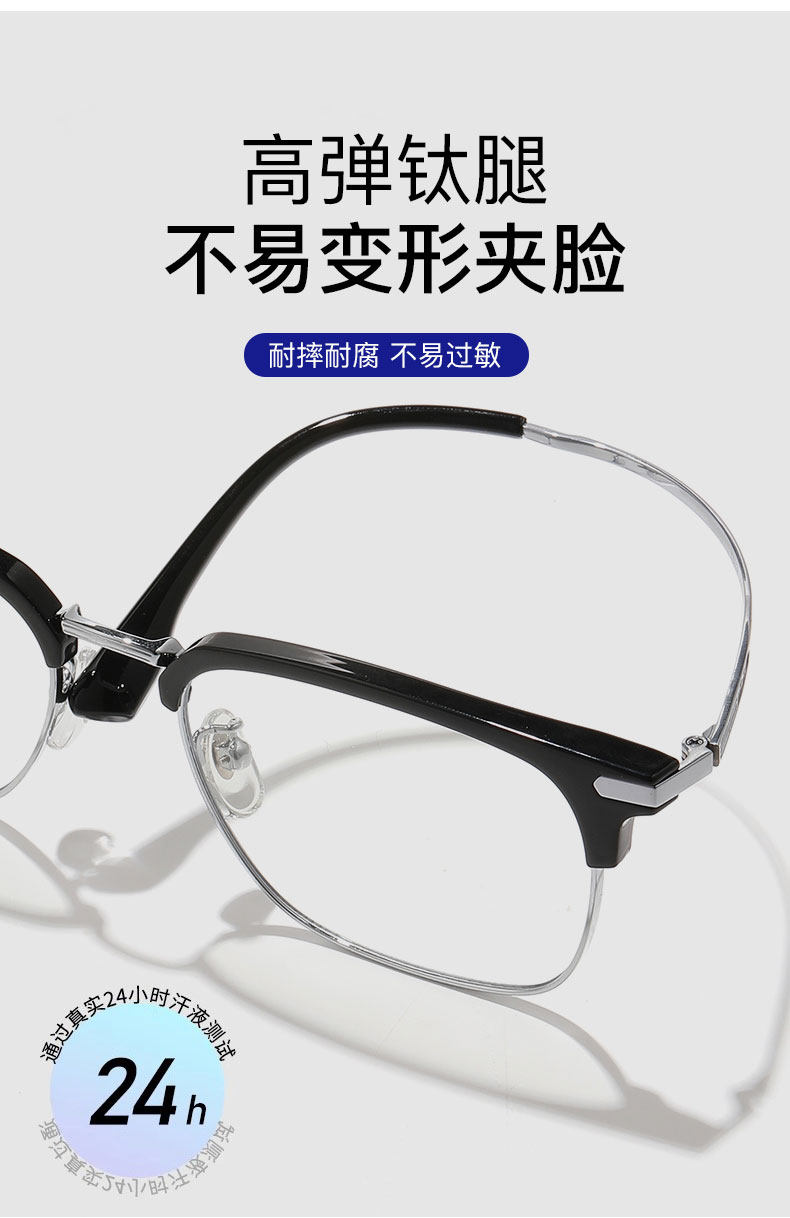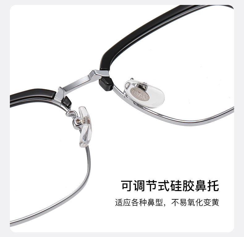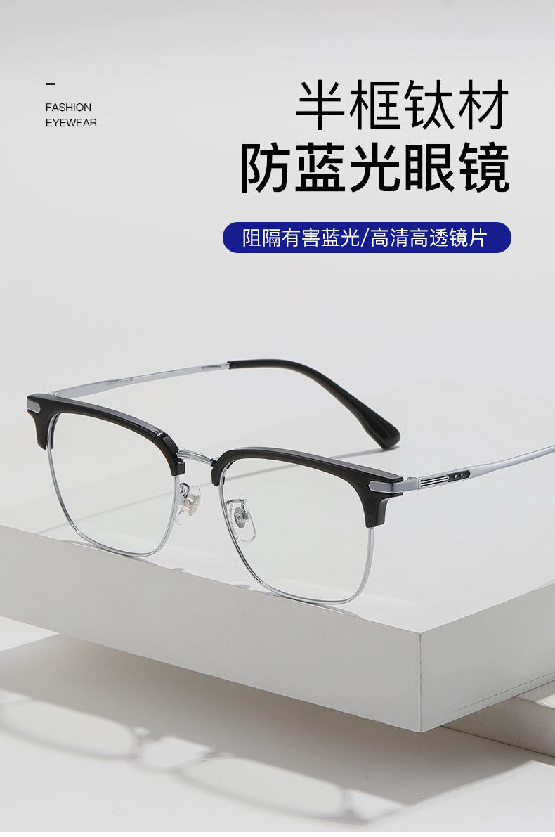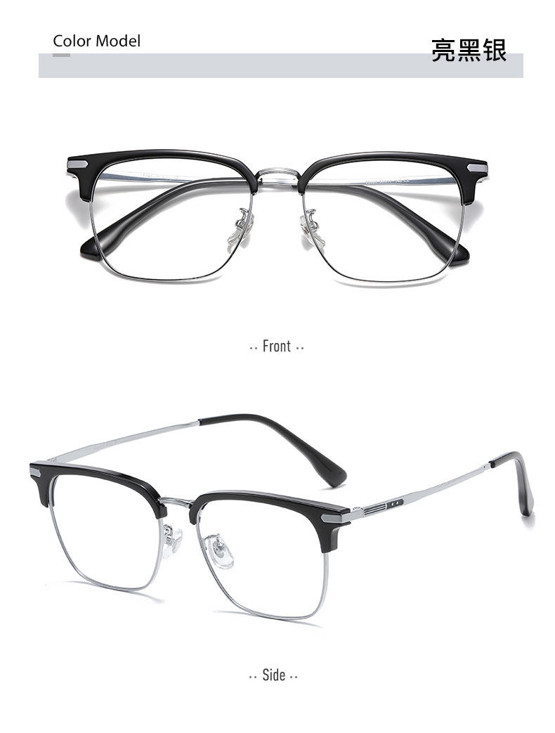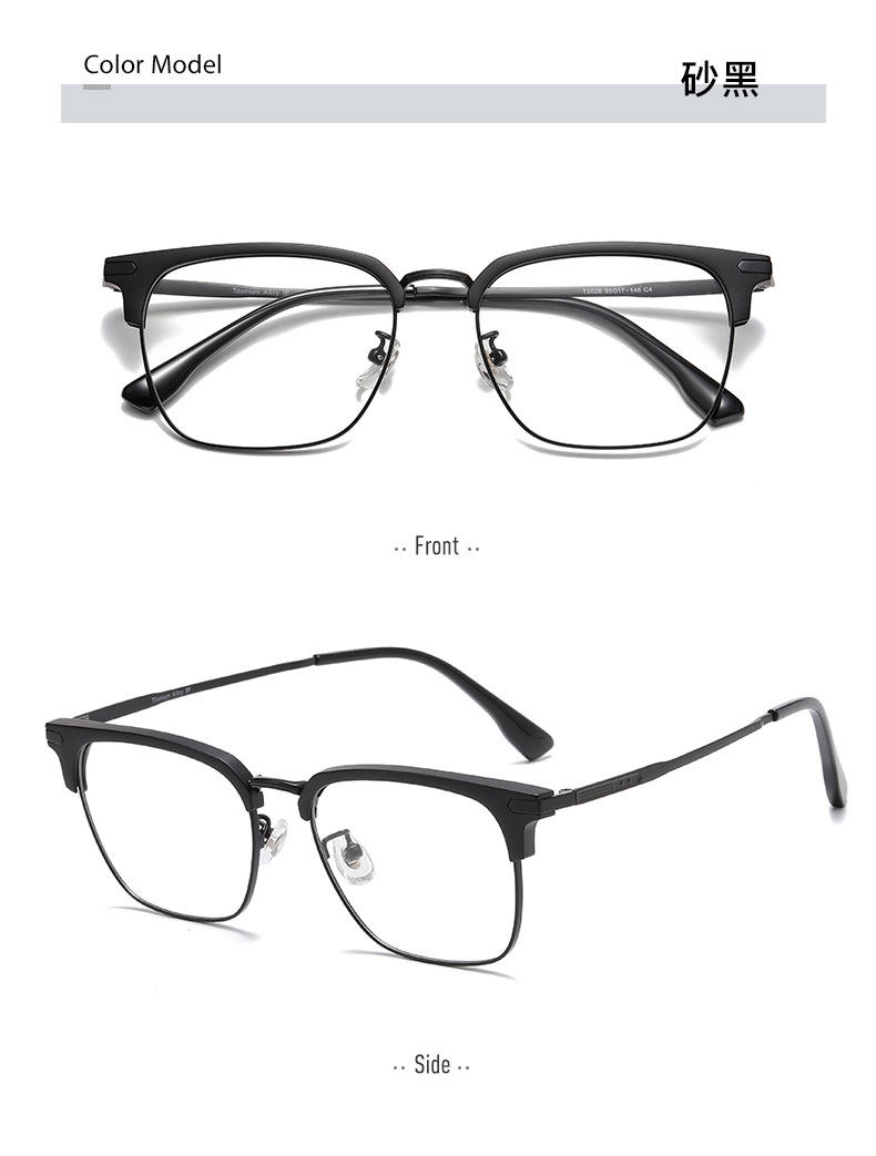 Professional Online Prescription Eyeglasses for Men with Astigmatism, Customizable Prescription, Pure Titanium Half-Frame, Blue Light Blocking, Photochromic Lenses
