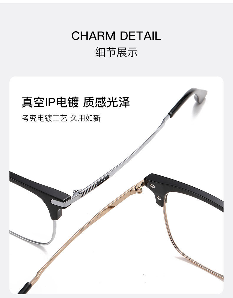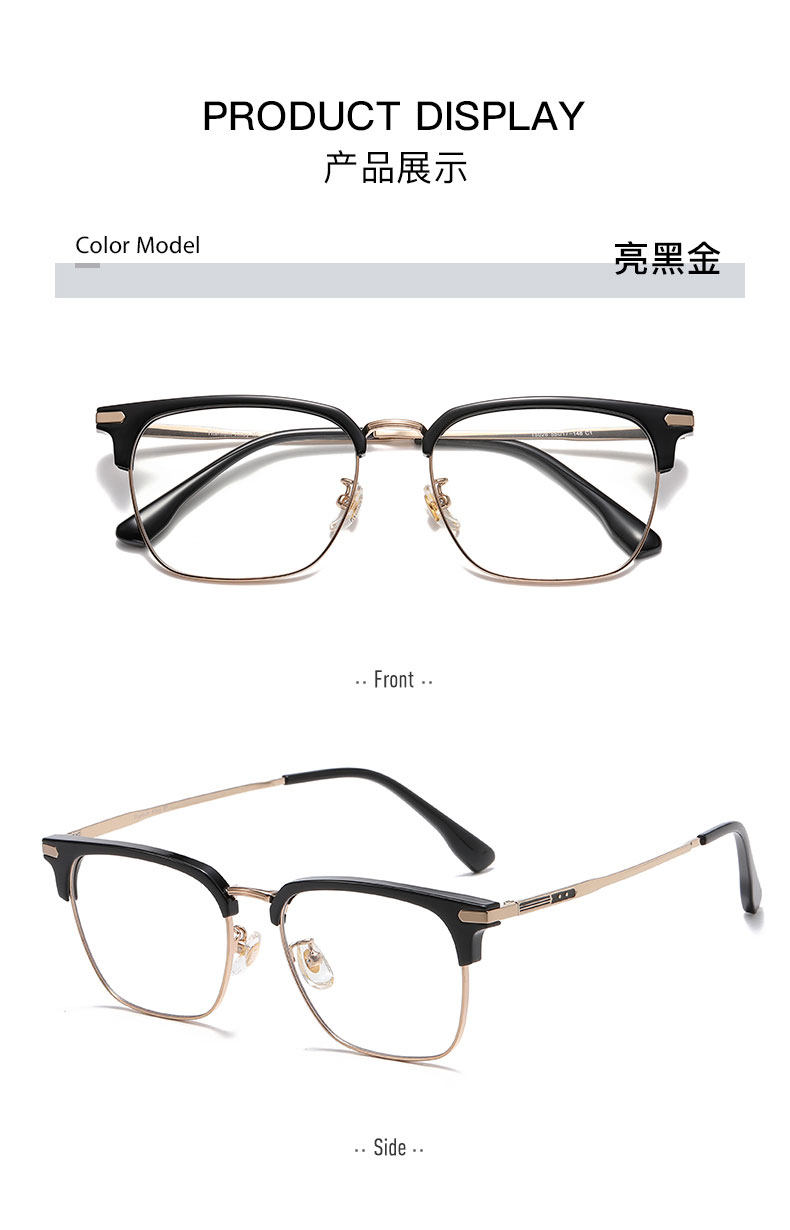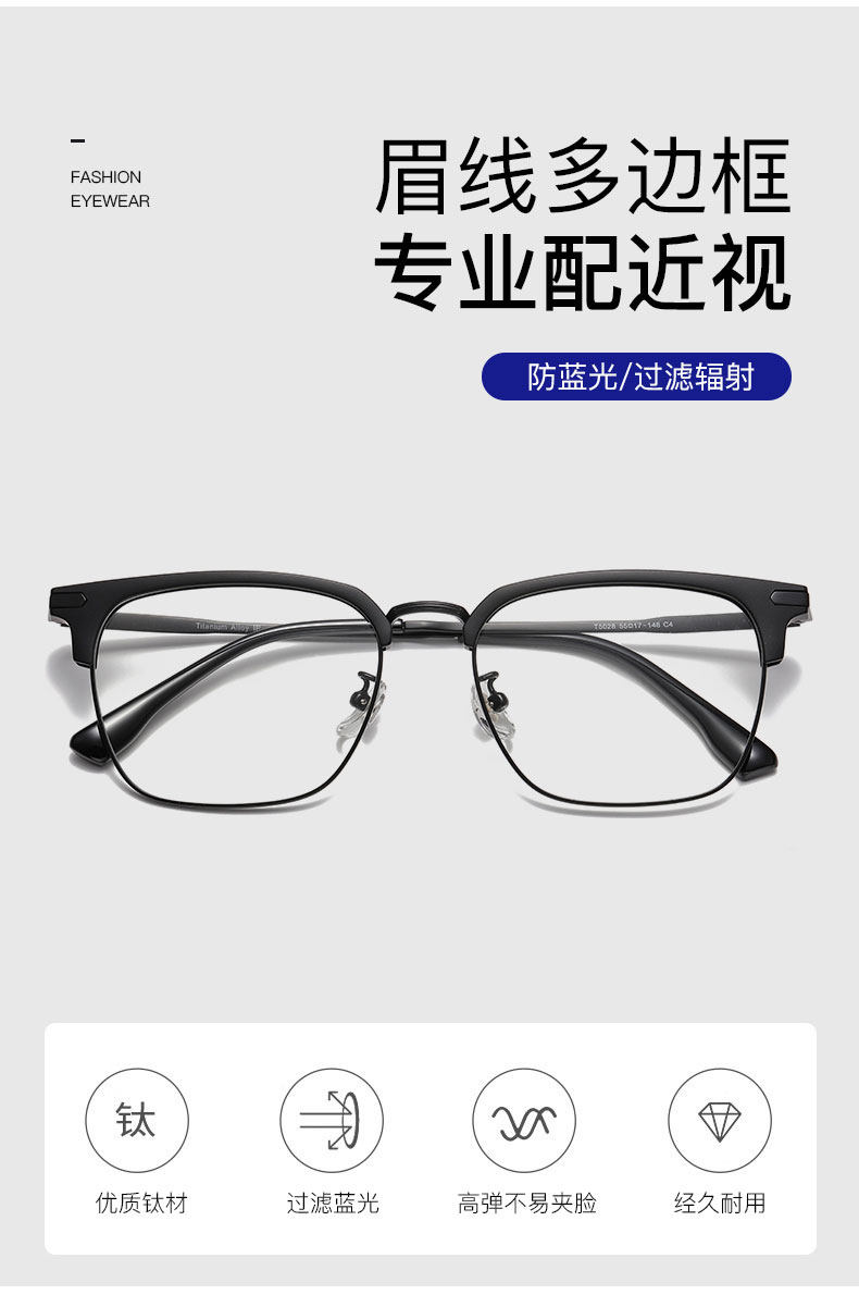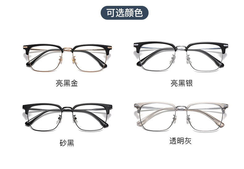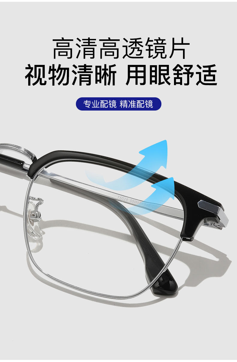 Professional Online Prescription Eyeglasses for Men with Astigmatism, Customizable Prescription, Pure Titanium Half-Frame, Blue Light Blocking, Photochromic Lenses
