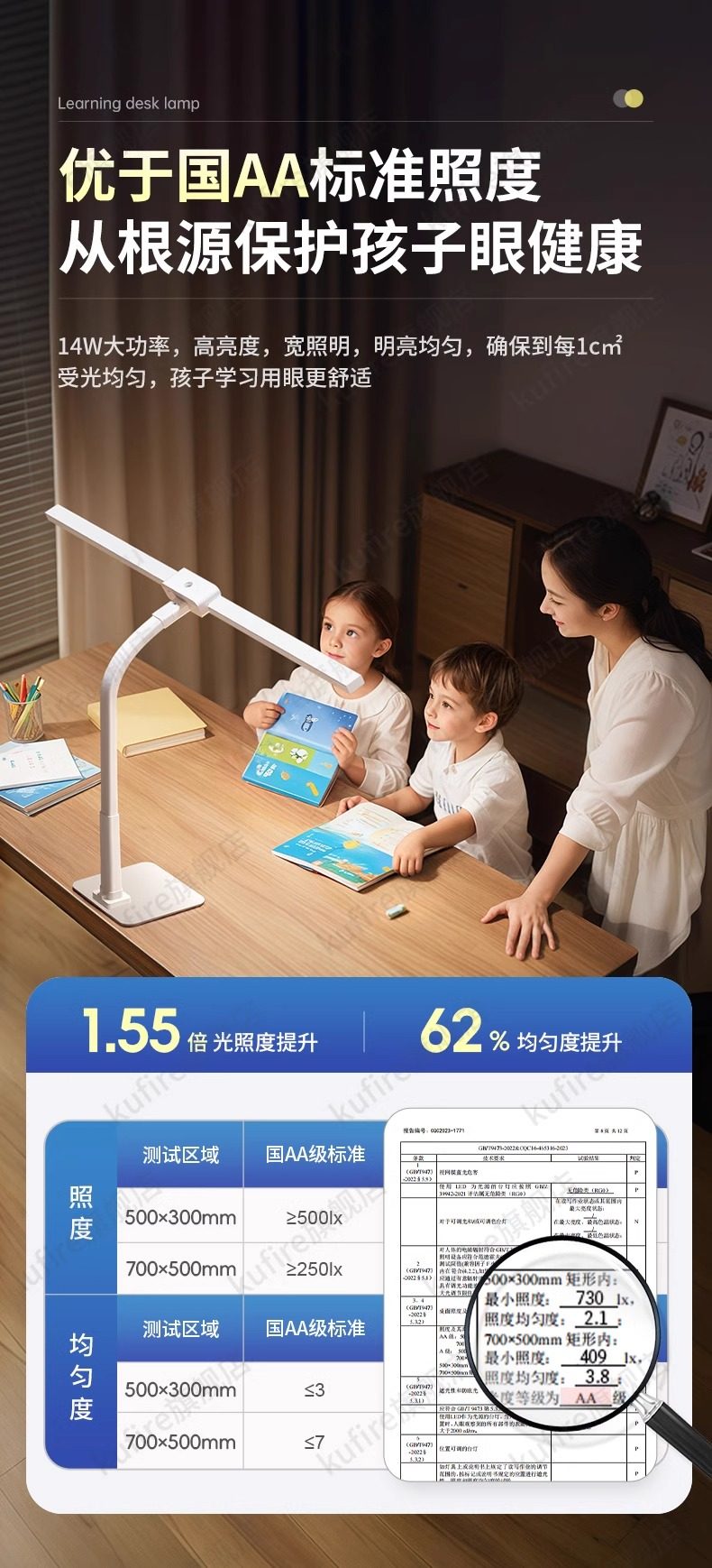 National Aa-Level Eye Protection Lamp, Desk Lamp for Studying, Dedicated for Students and Children, Full-Spectrum Reading Lamp for Writing and Homework on the Desk