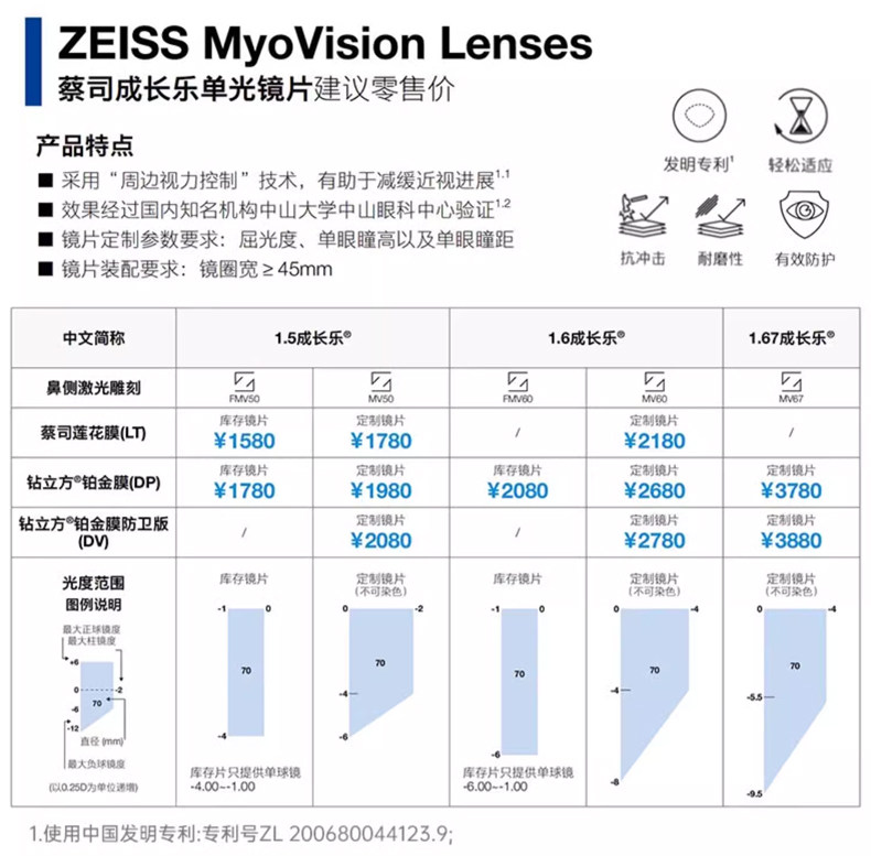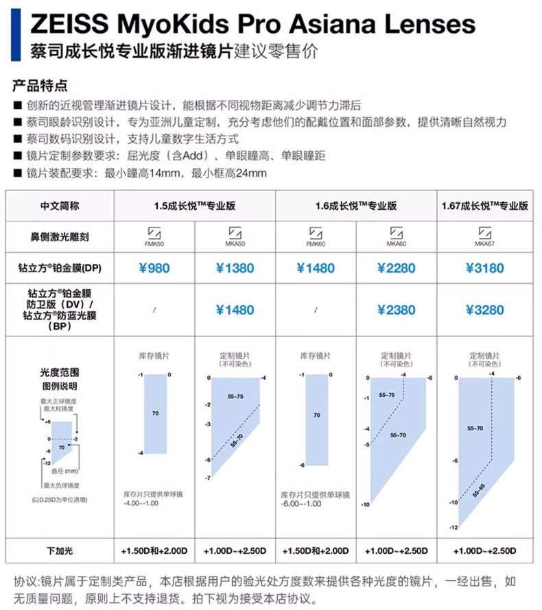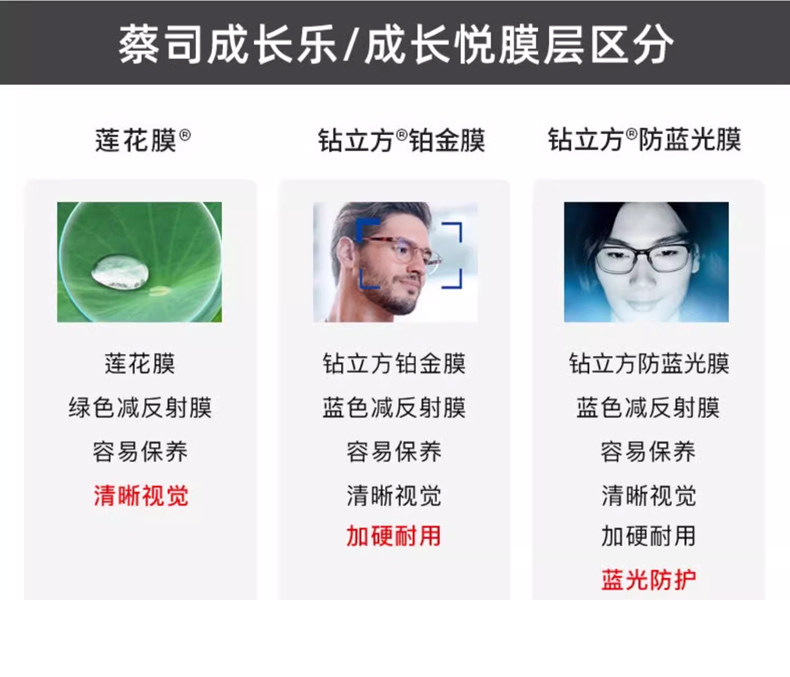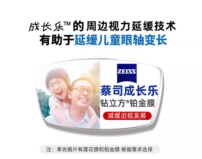 Zeiss Children's Growth Platinum Film Lotus Film Focus-Reducing Myopia Prevention Enhanced Edition Student Glasses