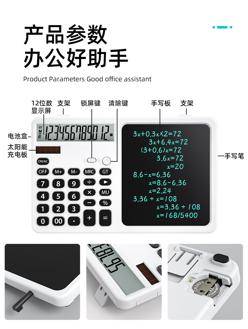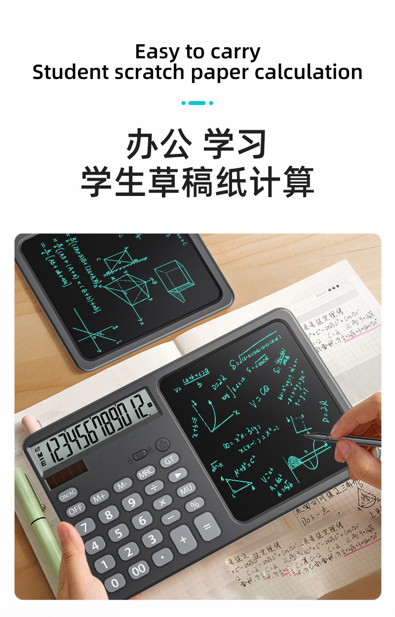 | Color Classification | [Silent Solar & Battery Model]White with Writing Tablet,[Silent Solar & Battery Model]Black with Writing Tablet,[Upgraded Voice Charging Model]White Calculator,[Upgraded Voice Charging Model]Black Calculator |