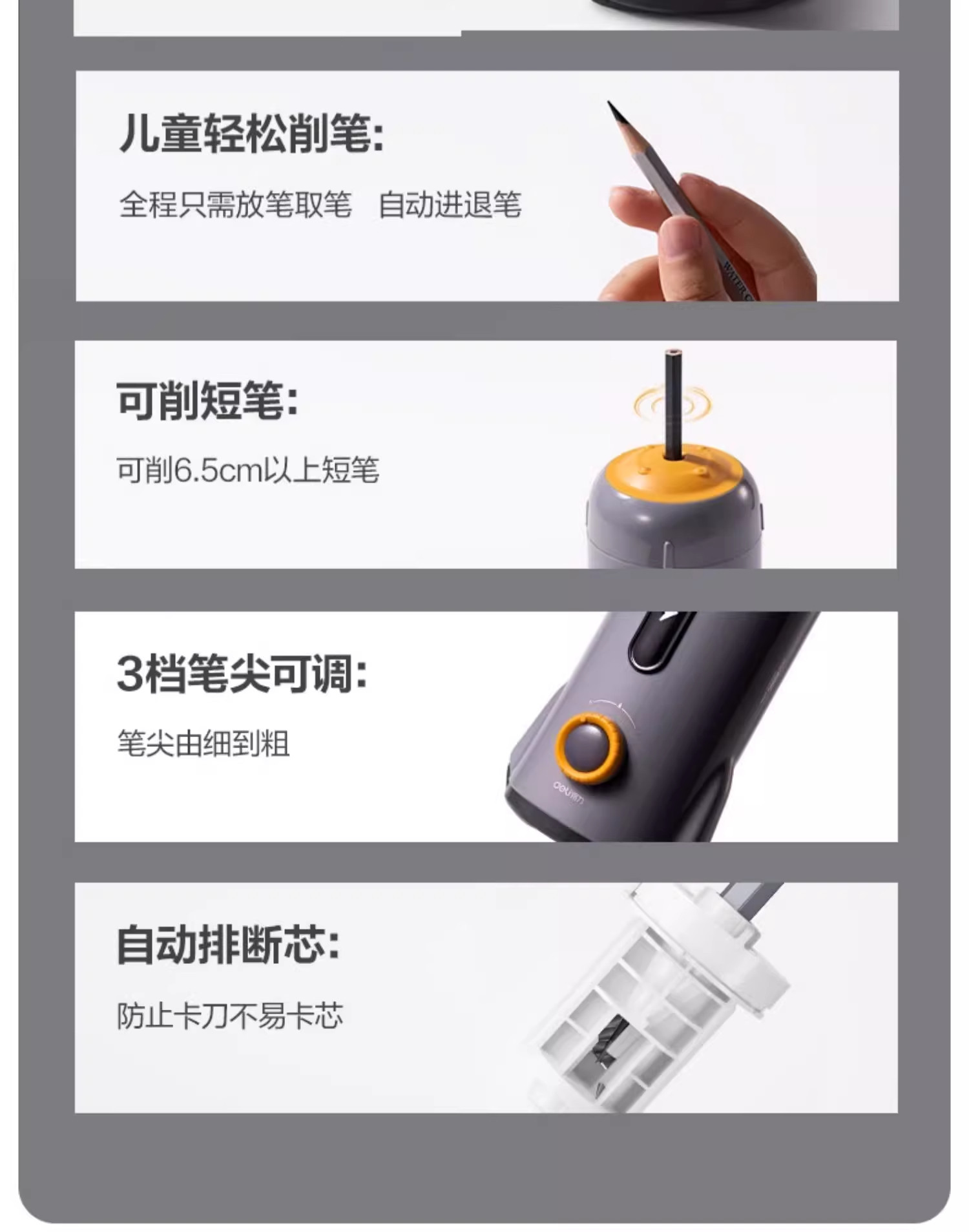 | Color Classification | [Consult Customer Service for Fast Delivery],Fully Automatic Advance and Retreat⭐6.9Mm–8Mm⭐ 3 Levels Adjustable,[Fully Automatic Forward and Backward/5-Speed Adjustable]Off-White,[Fully Automatic Forward and Backward/5-Speed Adjustable]Dark Gray,[Fully Automatic Forward and Backward/5-Speed Adjustable]Off-White + Original Knife Holder,[Fully Automatic Forward and Backward/5-Speed Adjustable]Dark Gray + Original Knife Holder,[Fully Automatic Forward and Backward/5-Speed Adjustable]Black,[Fully Automatic Forward and Backward/5-Speed Adjustable]White,[Fully Automatic Forward and Backward/5-Speed Adjustable]Pink,[Fully Automatic Forward and Backward/5-Speed Adjustable]Blue,Fully Automatic Large Diameter⭐6.9Cm-11Cm⭐Both Thick and Thin Pens Can Be Sharpened,[Fully Automatic/5-Speed/Large Diameter]Off-White,[Fully Automatic/5-Speed/Large Diameter]Dark Gray,[Fully Automatic/5-Speed/Large Diameter]Off-White + Original Replacement Core,[Fully Automatic/5-Speed/Large Diameter]Dark Gray + Original Replacement Core,↓↓↓~ the Following Is the Combined Suit,Children Prefer ↓↓↓,[Fully Automatic Forward and Backward/3-Speed Adjustable]Off-White + Electric Eraser.,[Fully Automatic Forward and Backward/3-Speed Adjustable]Dark Gray + Electric Eraser.,[Fully Automatic Forward and Backward/3-Speed Adjustable]Off-White + Desktop Cleaner.,[Fully Automatic Forward and Backward/3-Speed Adjustable]Dark Gray + Desktop Cleaner.,[Fully Automatic Forward and Backward/3-Speed Adjustable]Off-White + Electric Set.,[Fully Automatic Forward and Backward/3-Speed Adjustable]Dark Gray + Electric Set.,[Fully Automatic/5-Speed/Large Diameter]Off-White + Electric Eraser.,[Fully Automatic/5-Speed/Large Diameter]Dark Gray + Electric Eraser.,[Fully Automatic/5-Speed/Large Diameter]Off-White + Desktop Cleaner.,[Fully Automatic/5-Speed/Large Diameter]Dark Gray + Desktop Cleaner.,[Fully Automatic/5-Speed/Large Diameter]Off-White + Electric Set.,[Fully Automatic/5-Speed/Large Diameter]Dark Gray + Electric Set. |