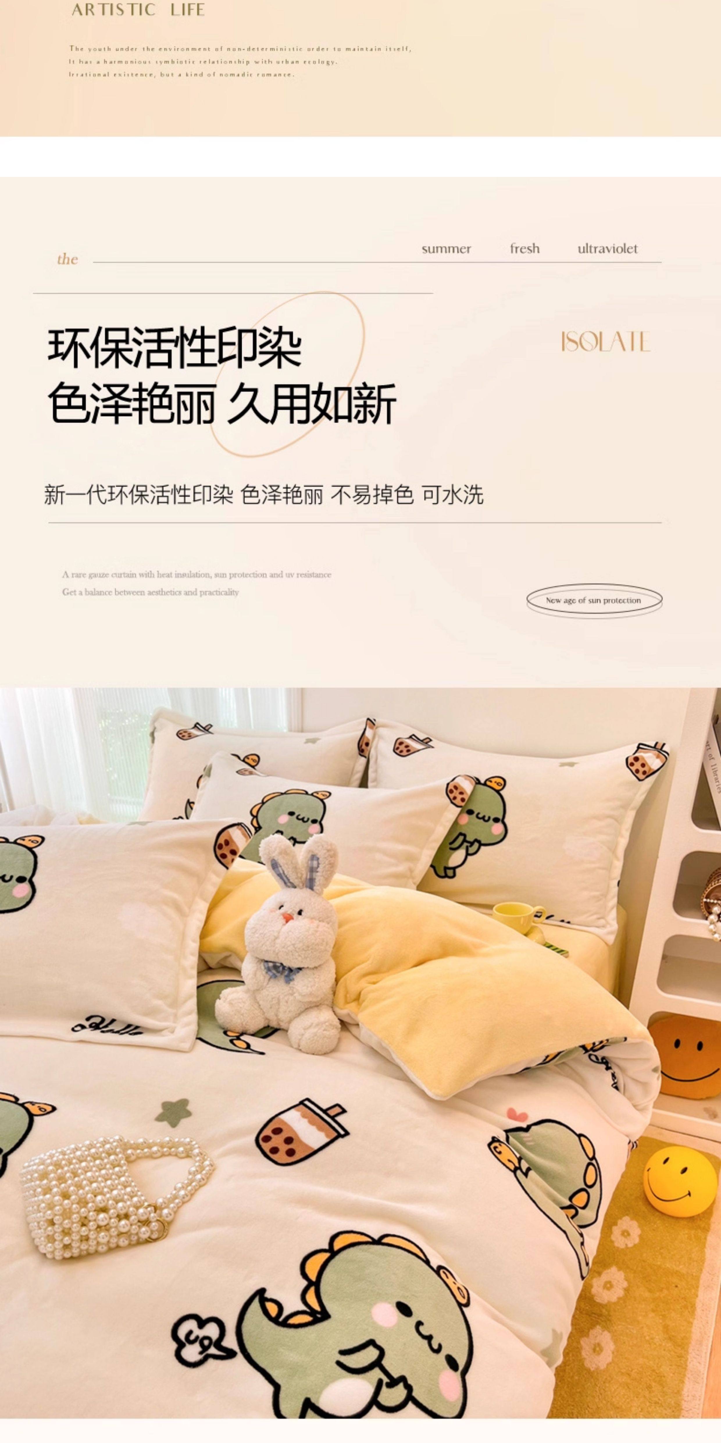 | Color Classification | Mr. Dinosaur [Milk Velvet Quilt Cover + Warm Quilt Core]],Love Little Dragon [Milk Velvet Quilt Cover + Warm Quilt Core]],Loving Rabbit [Milk Velvet Quilt Cover + Warm Quilt Core]],Kiss the Dinosaur [Milk Velvet Quilt Cover + Warm Quilt Core]],Big Cow [Milk Velvet Quilt Cover + Warm Quilt Core]],Monica [Milk Velvet Quilt Cover + Warm Quilt Core]],Little Rabbit Strawberry [Milk Velvet Quilt Cover + Warm Quilt Core]],Black and White Cat [Milk Velvet Quilt Cover + Warm Quilt Core]],Little Bala [Milk Velvet Quilt Cover + Warm Quilt Core]],Loving Puppy [Milk Velvet Quilt Cover + Warm Quilt Core]],Flower Basket Bunny [Milk Velvet Quilt Cover + Warm Quilt Core]],Circus Puppy [Milk Velvet Quilt Cover + Warm Quilt Core]],Morning Glory Bear [Milk Velvet Quilt Cover + Warm Quilt Core]],Fun Paradise [Milk Velvet Quilt Cover + Warm Quilt Core]],Rabbit Paradise [Milk Velvet Quilt Cover + Warm Quilt Core]],Little Flower Bear [Milk Velvet Quilt Cover + Warm Quilt Core]],Alphabet Dinosaur [Milk Velvet Quilt Cover + Warm Quilt Core]] |