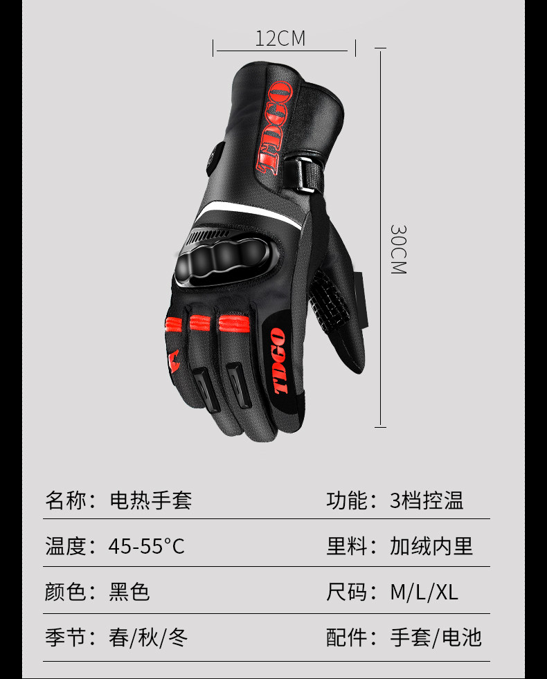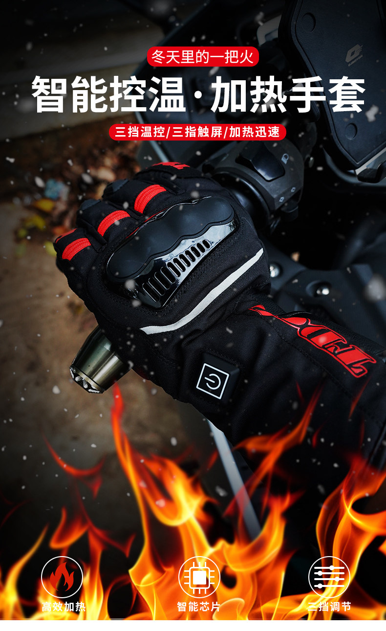 Autumn and Winter Motorcycle Gloves, Electric Heating, Cycling, Men'S, Warm, Cold-Proof, Windproof, Waterproof, Fleece-Lined, Thickened, Long Style for Motorcycles