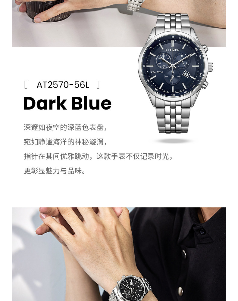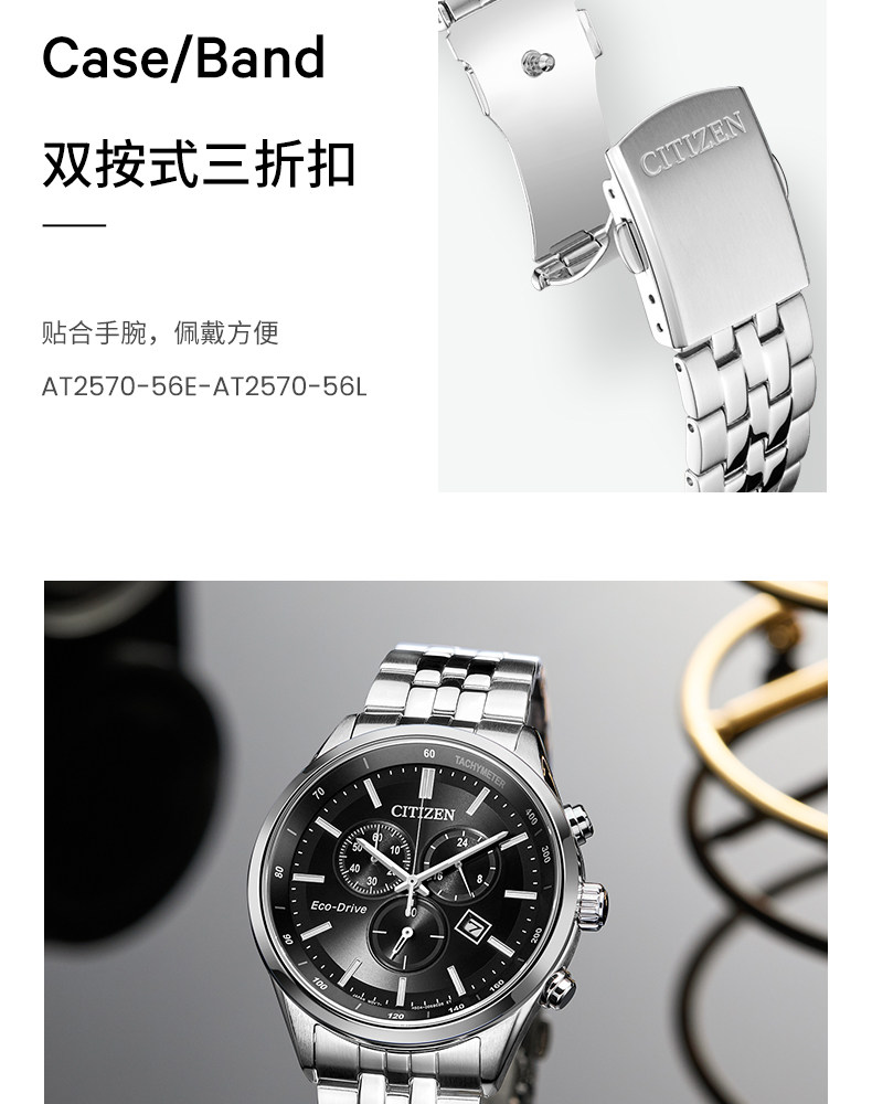 Citizen Watch New Product Eco-Drive Three-Eye Chronograph Business Fashion Men's Watch At2570-56E/L/2573