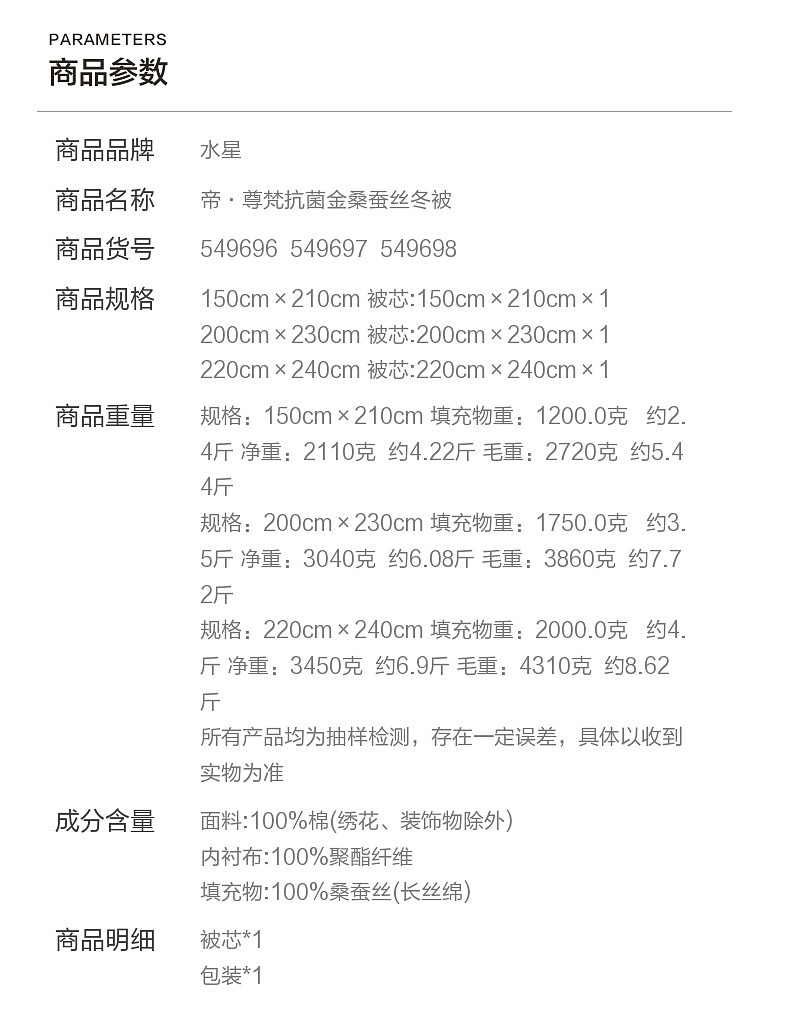 | Color Classification | Winter Quilt [Golden Mulberry Silk Filling + Pure Cotton Fabric + Class a Antibacterial] Di Zunfan |