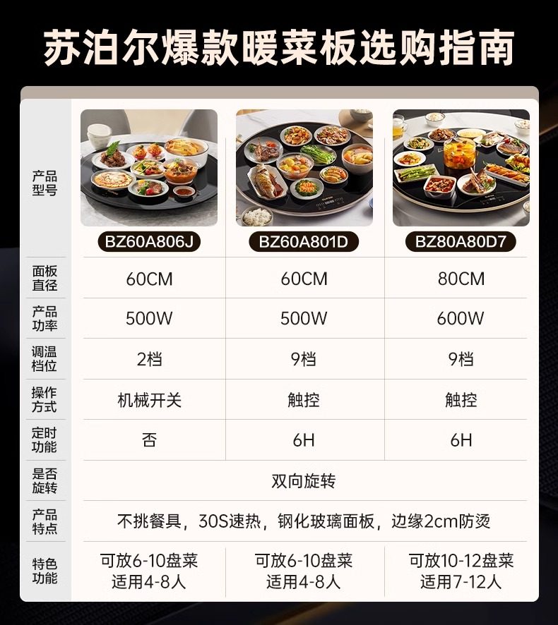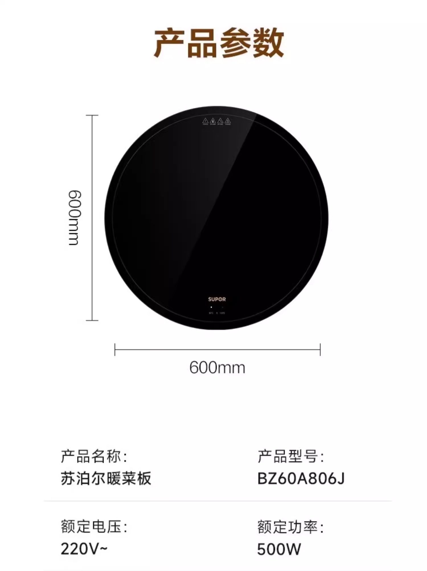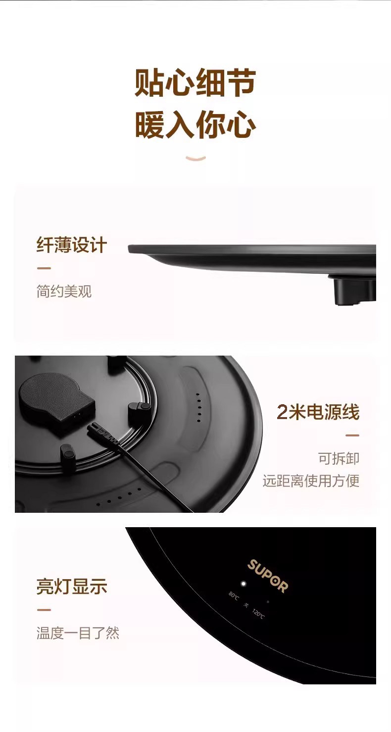 Supor Warming Chopping Board Hot Chopping Board Household Insulation Pad Heating Plate Constant Temperature Meal Artifact Multi-Functional Dining Table Turntable