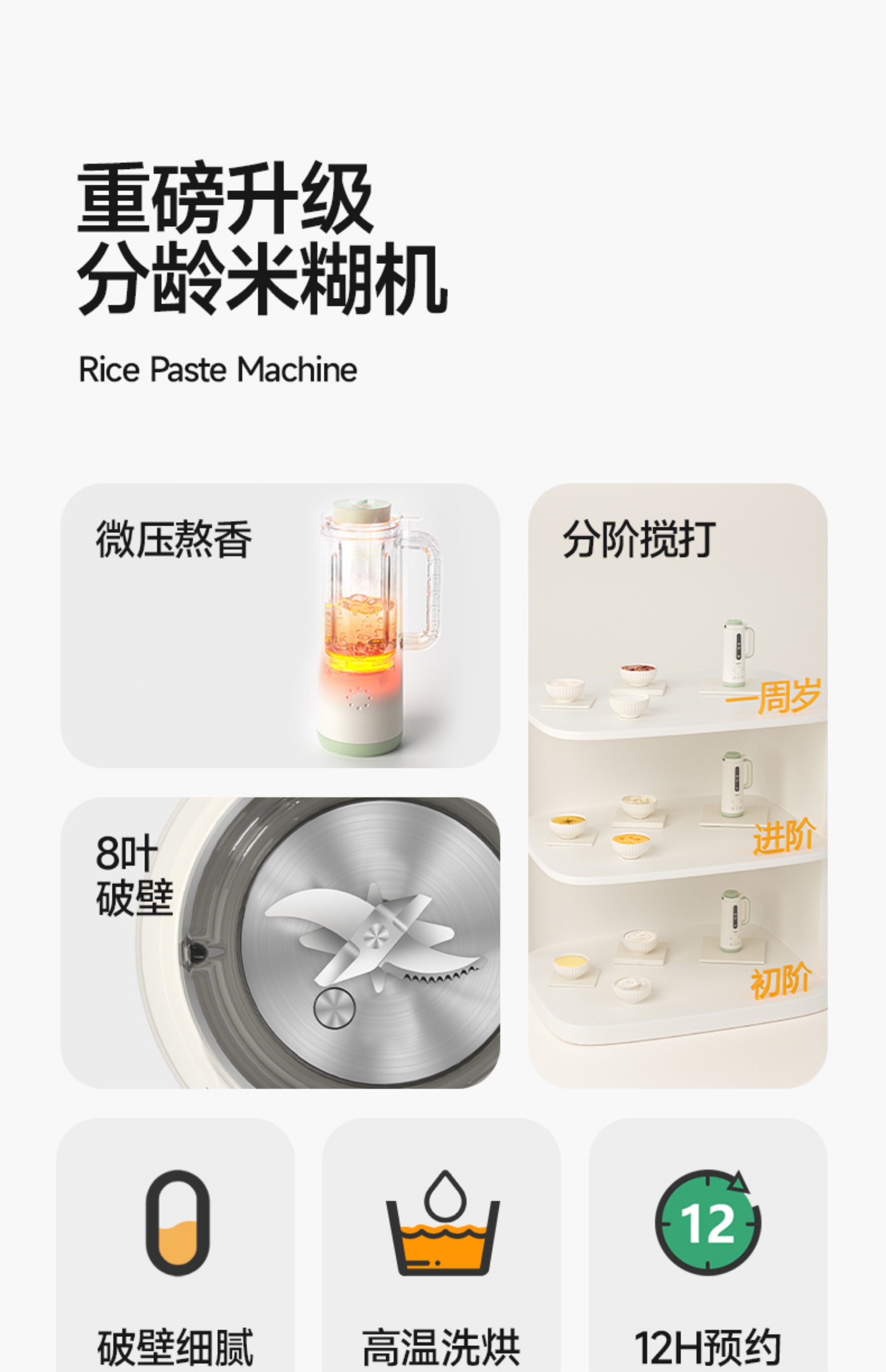 | Basic Functions | Supplementary Food,Soy Milk,Rice Cereal,Juice,Self-Cleaning,Appointment,Corn Juice |