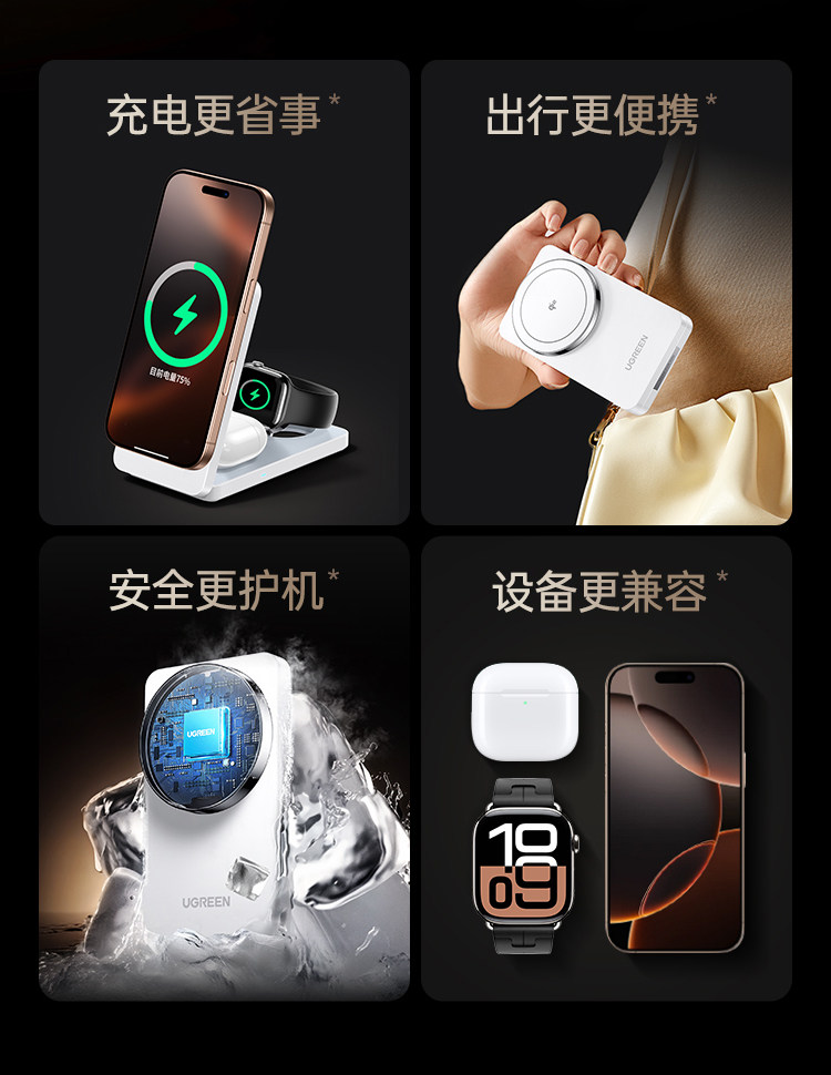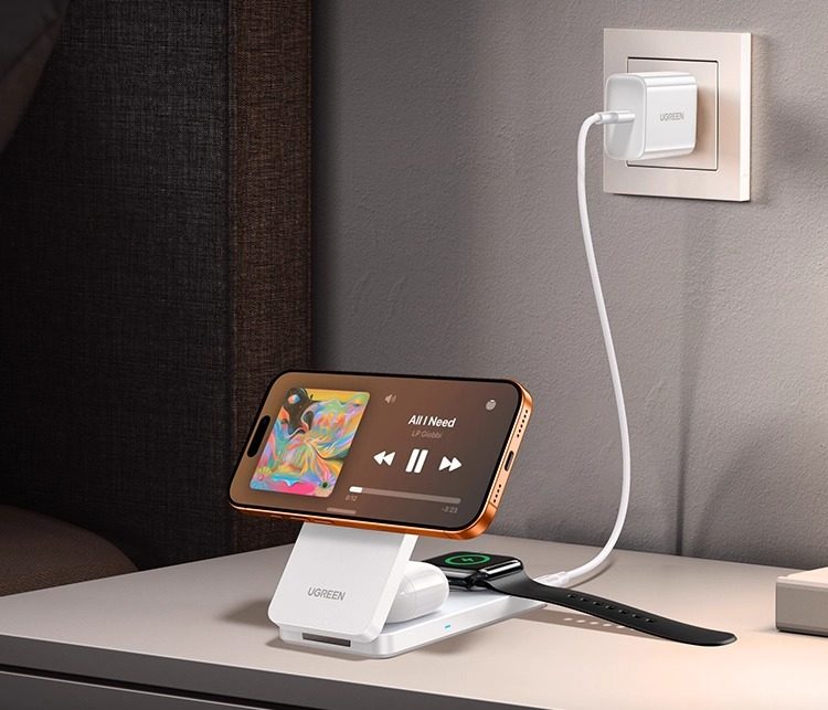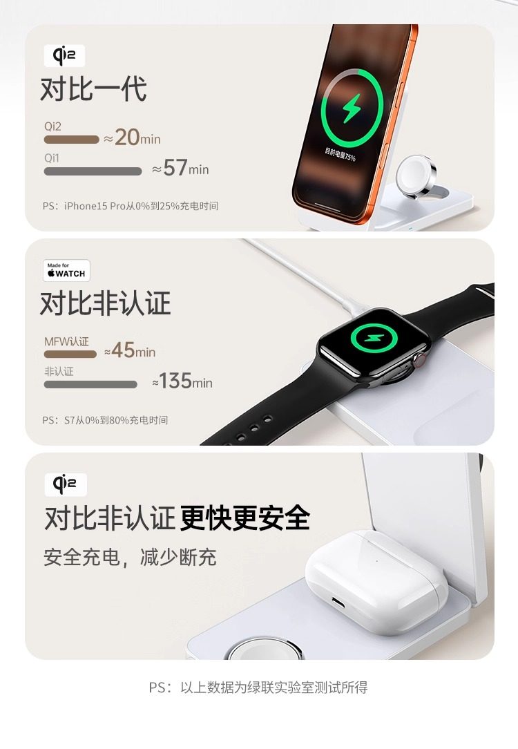 Green Alliance 3-in-1 Wireless Charger Qi2Mfi Certified Suitable for Apple 17Promax Huawei Mobile Phones iWatch Watch Earphones Magsafe Magnetic Base Foldable Stand 25W Fast Charging