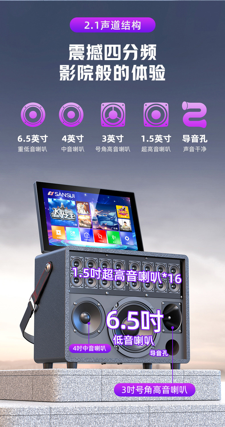 Shanshui Square Dance Audio System with Display Screen Outdoor Karaoke Singing All-In-One Machine Home Ktv Audio Set Karaoke Machine
