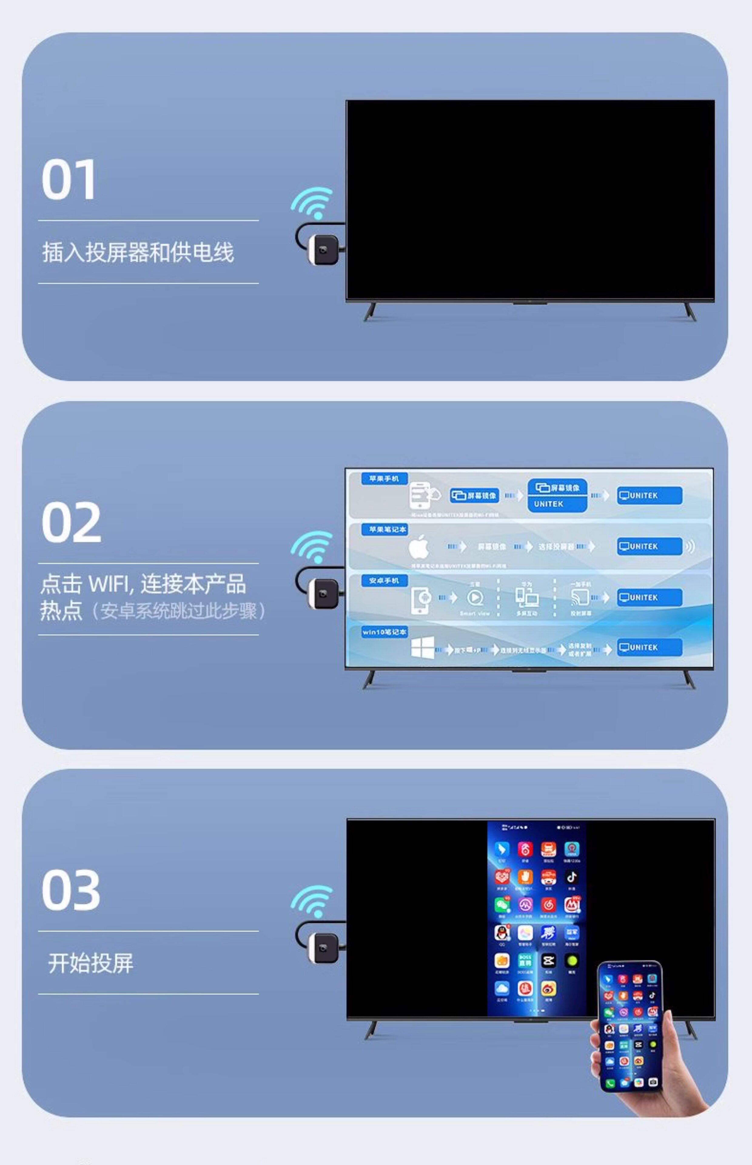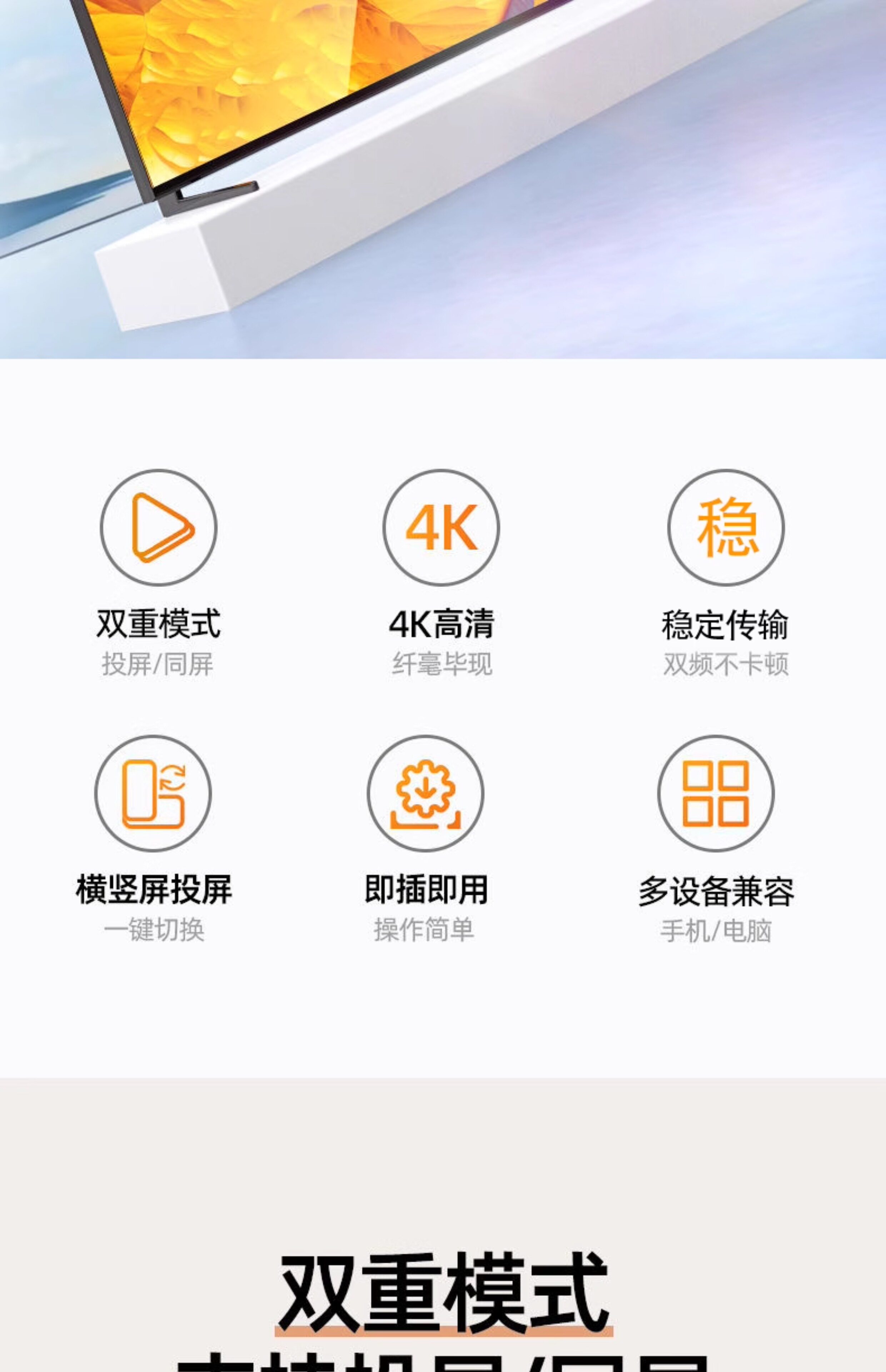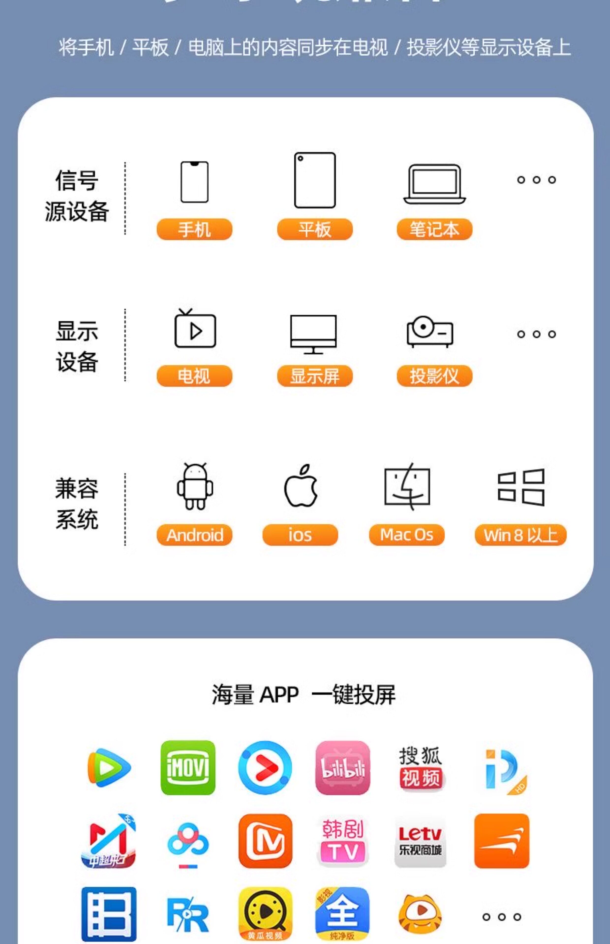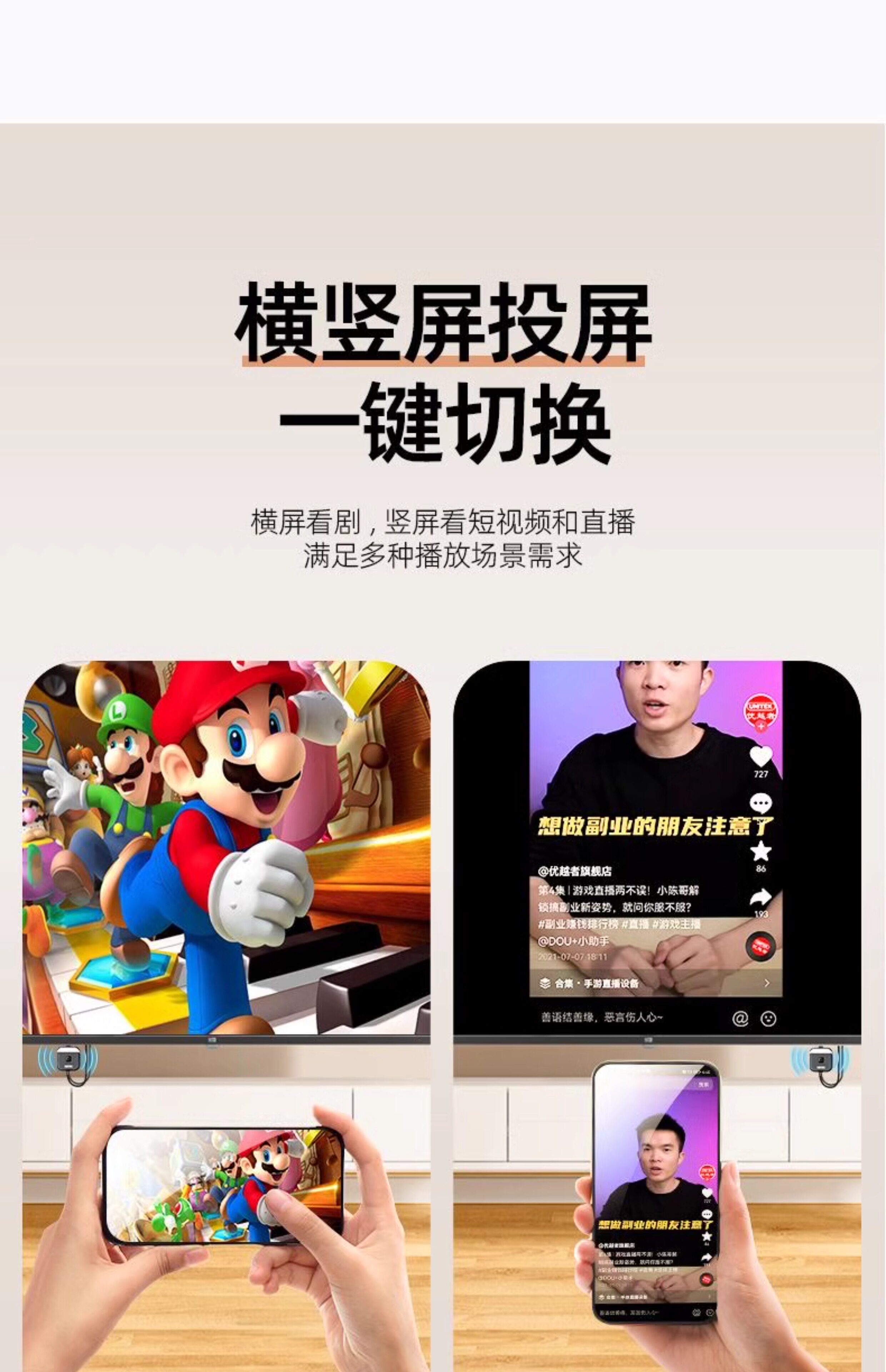 Mobile Phone Wireless Screen Mirroring Device for Connecting to Tv, HDMI Adapter for Mirroring Screen to Monitor, Computer, Projector, Universal Transmission