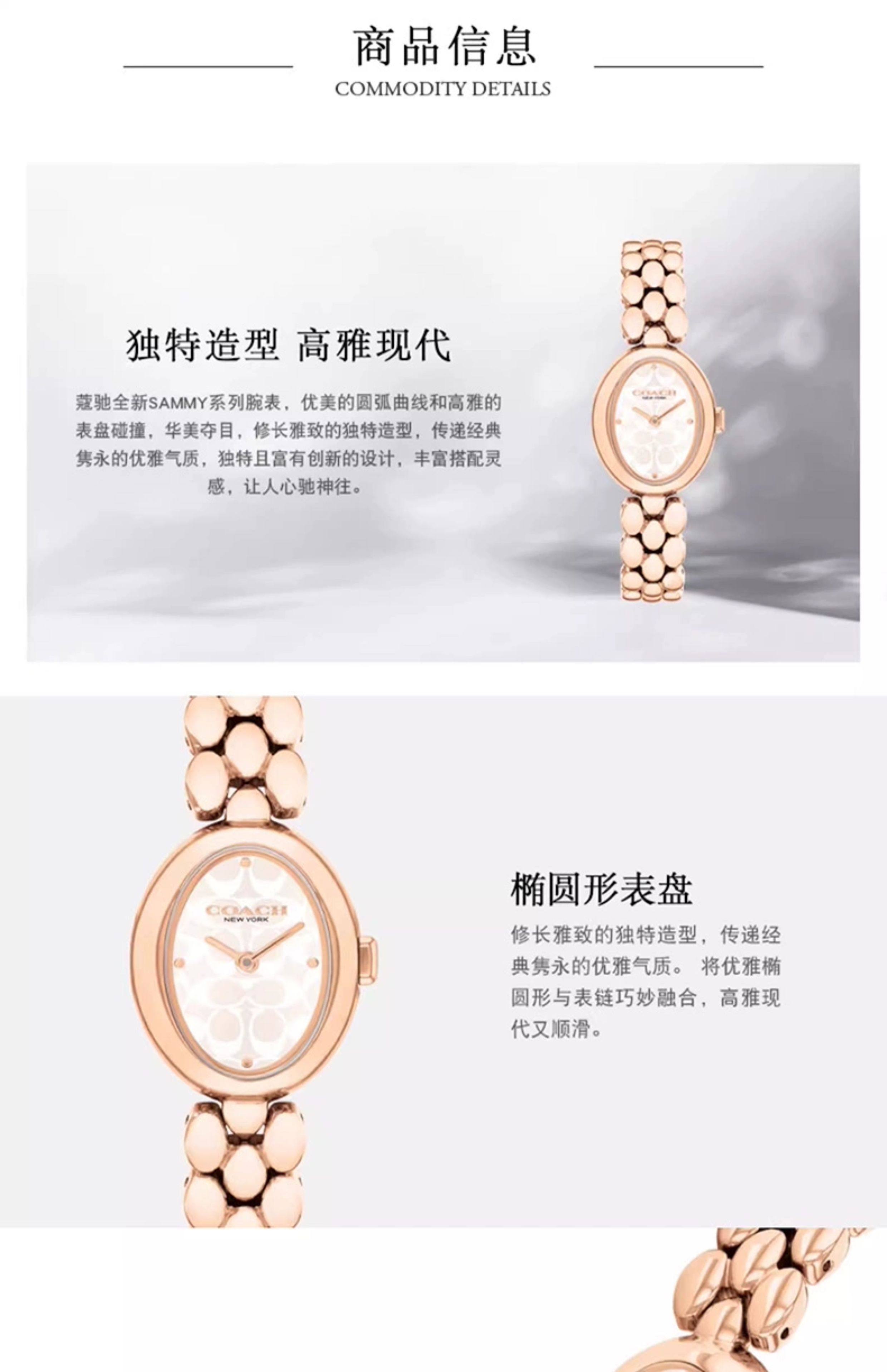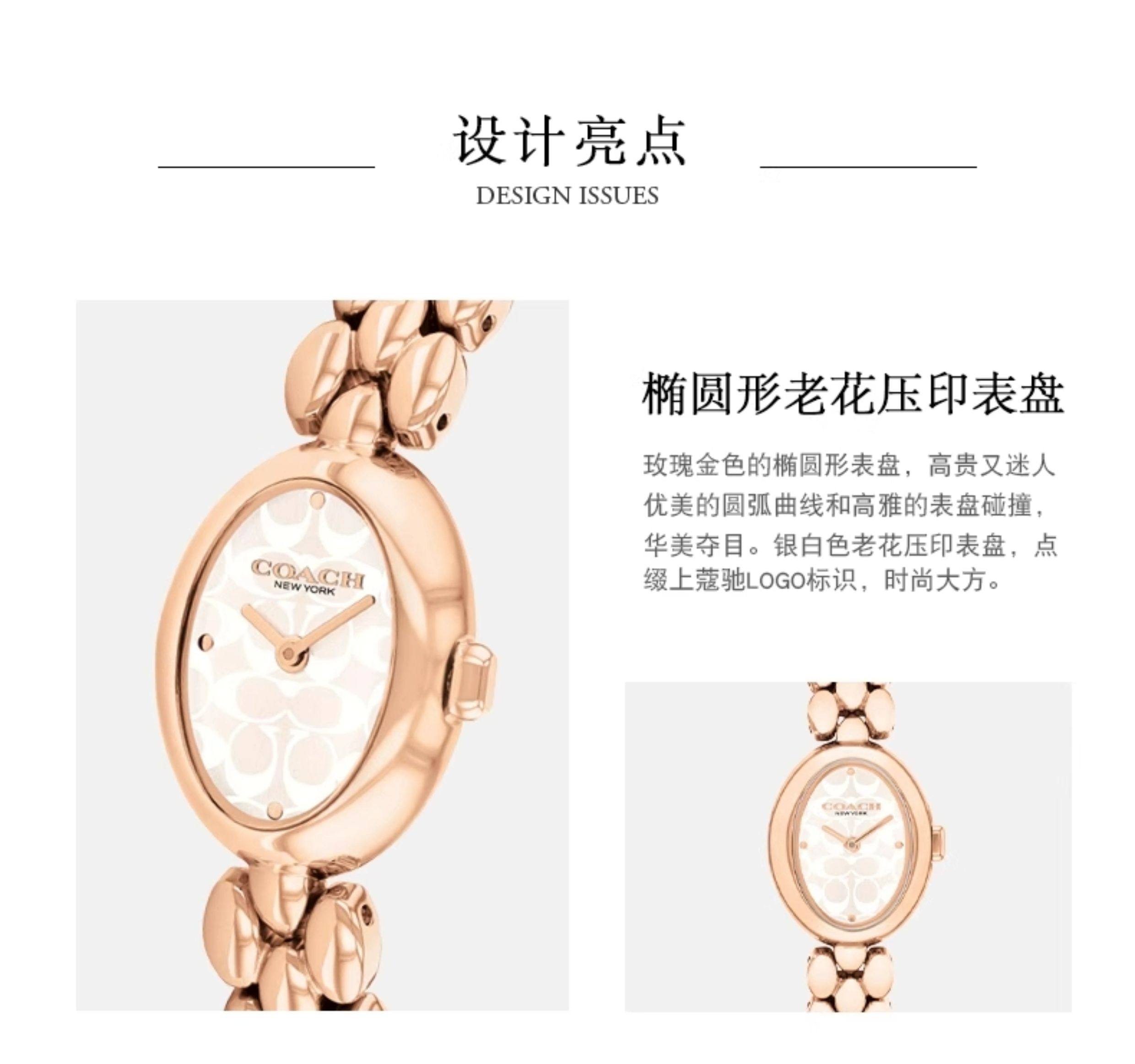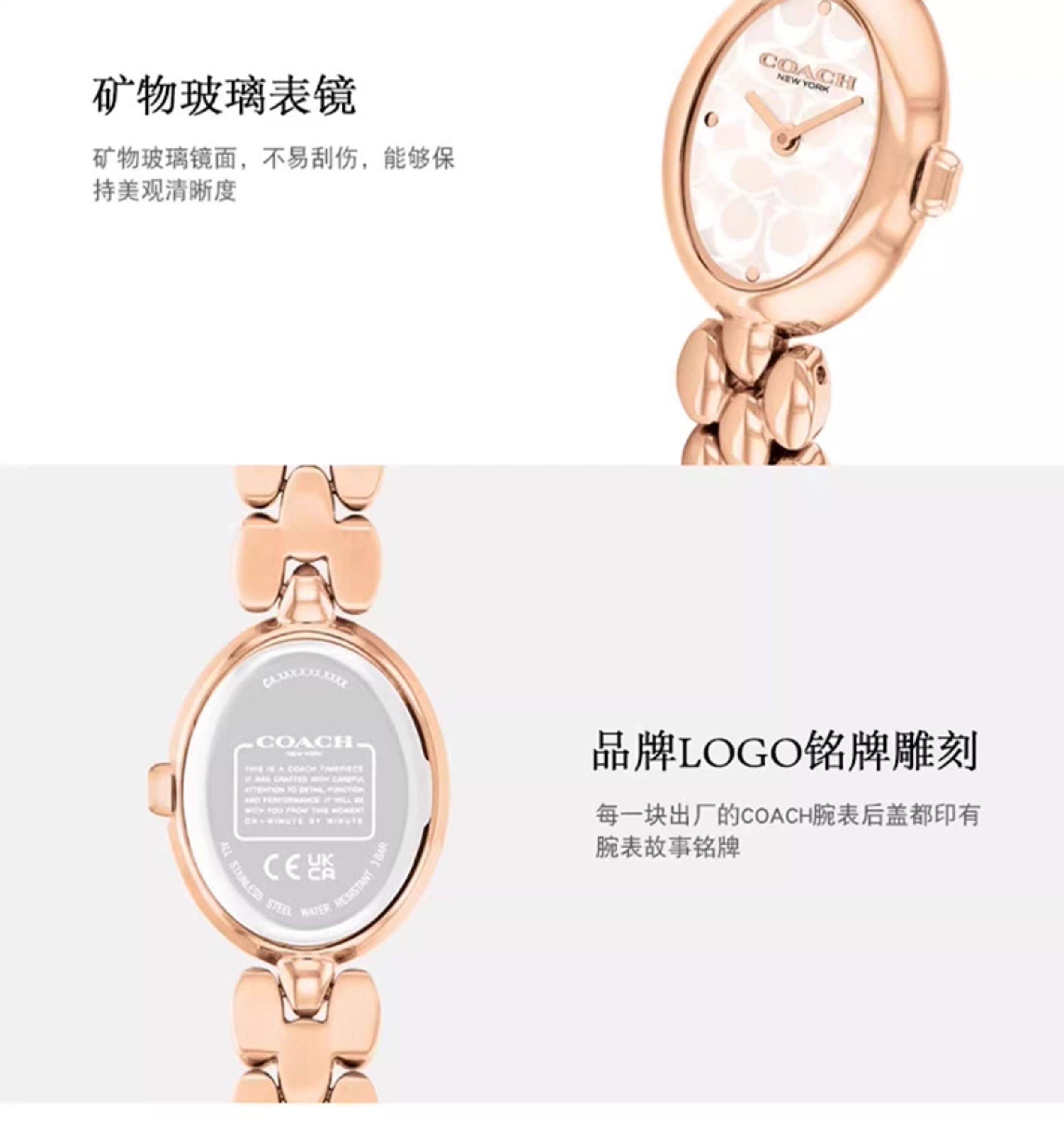 COACH Steel Band Presbyopic Embossed No-Number Dial Quartz Women's Watch Gift for Girlfriend