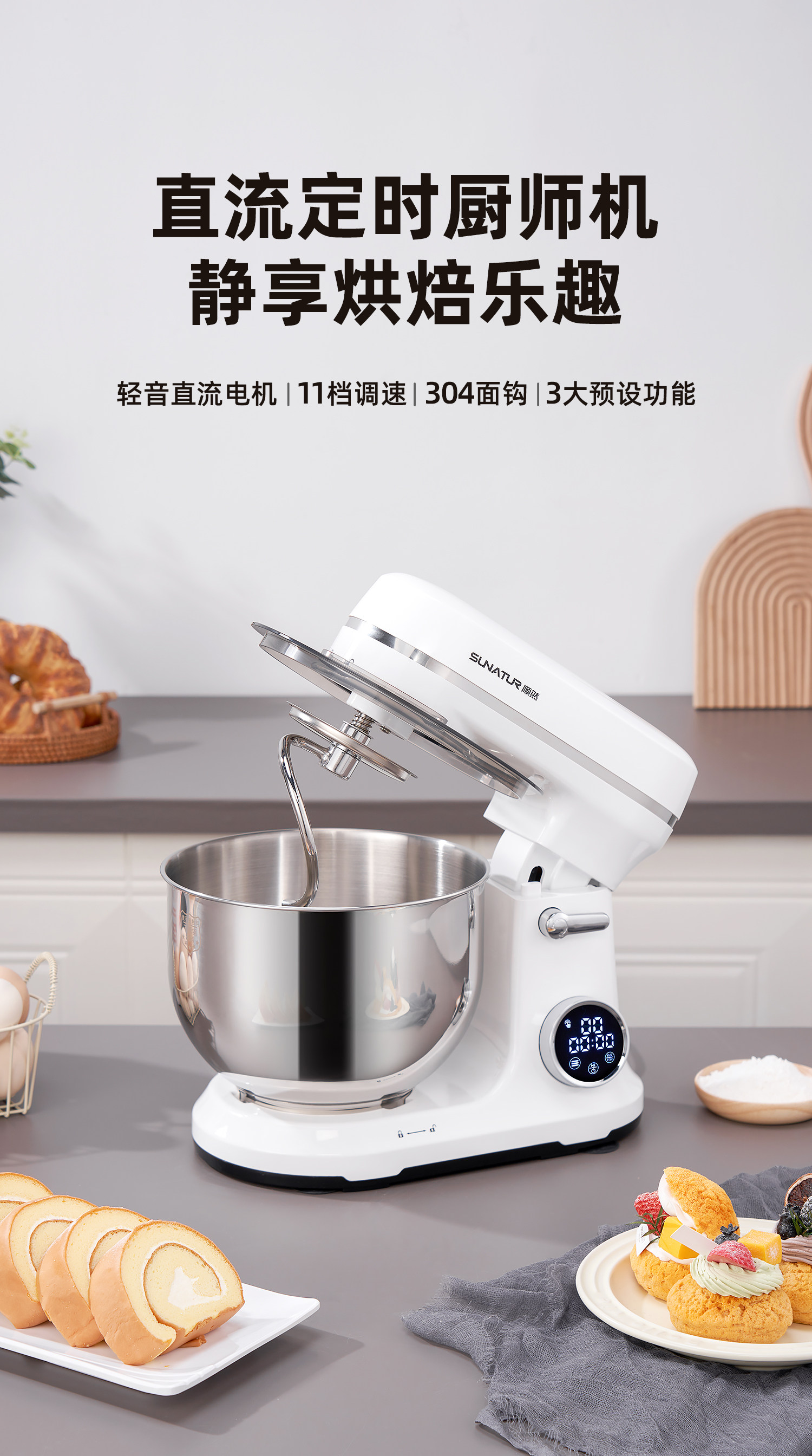 [National Subsidy 15%]Shunran Qingyin Dc Chef Machine, Small Fully Automatic Kneading, Baking, and Dough Mixer for Home Use