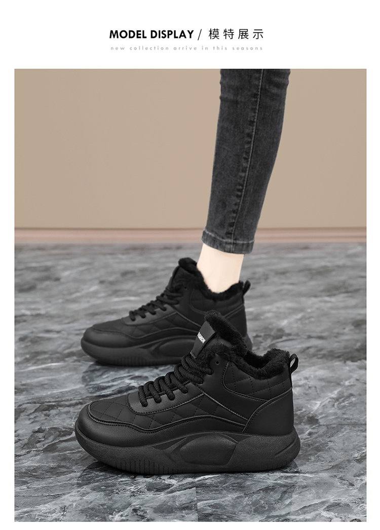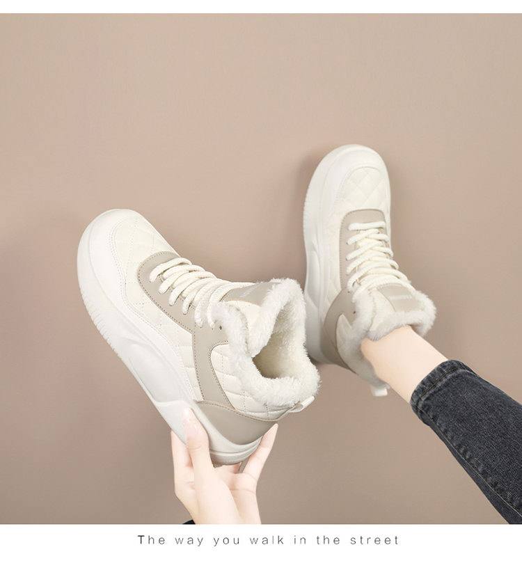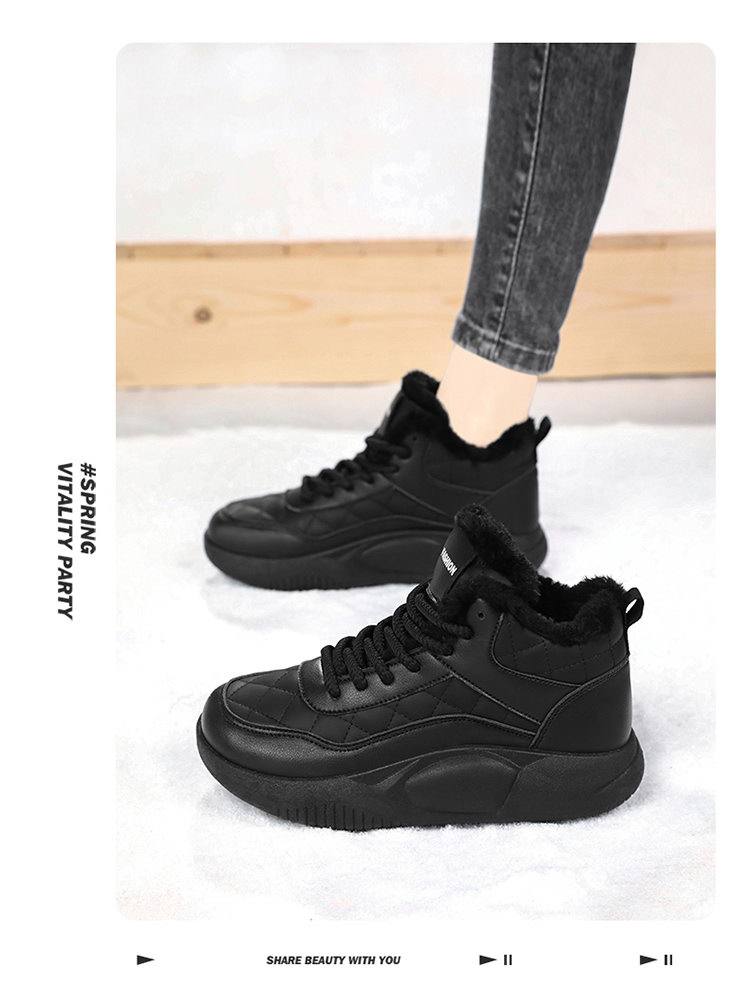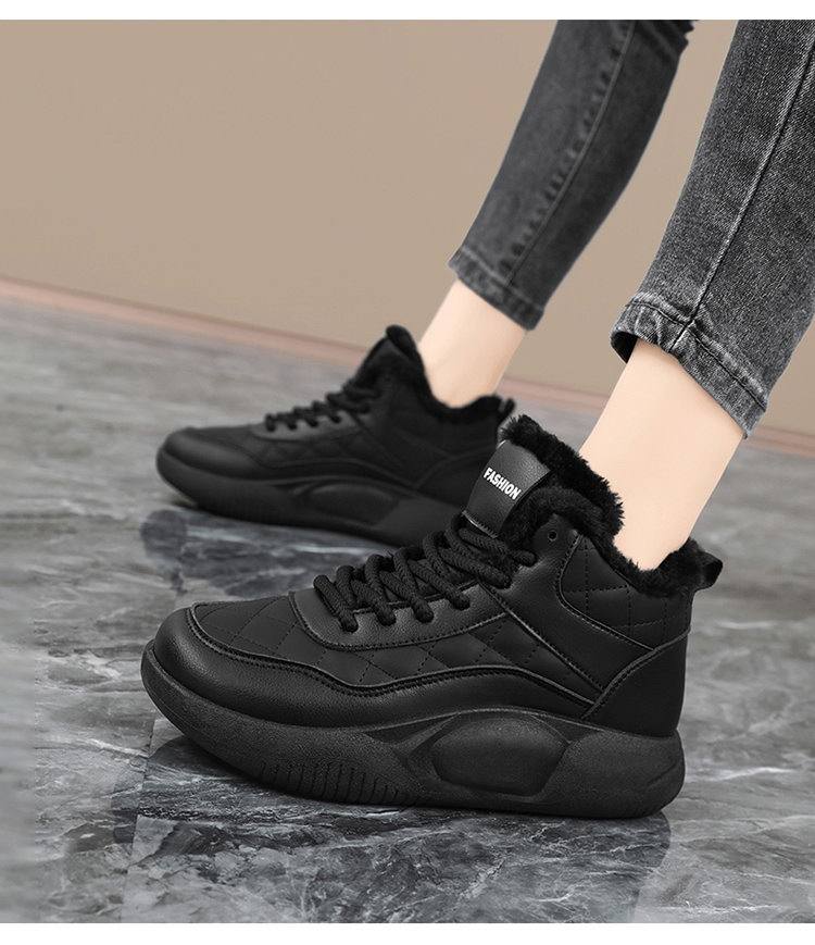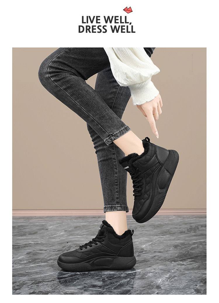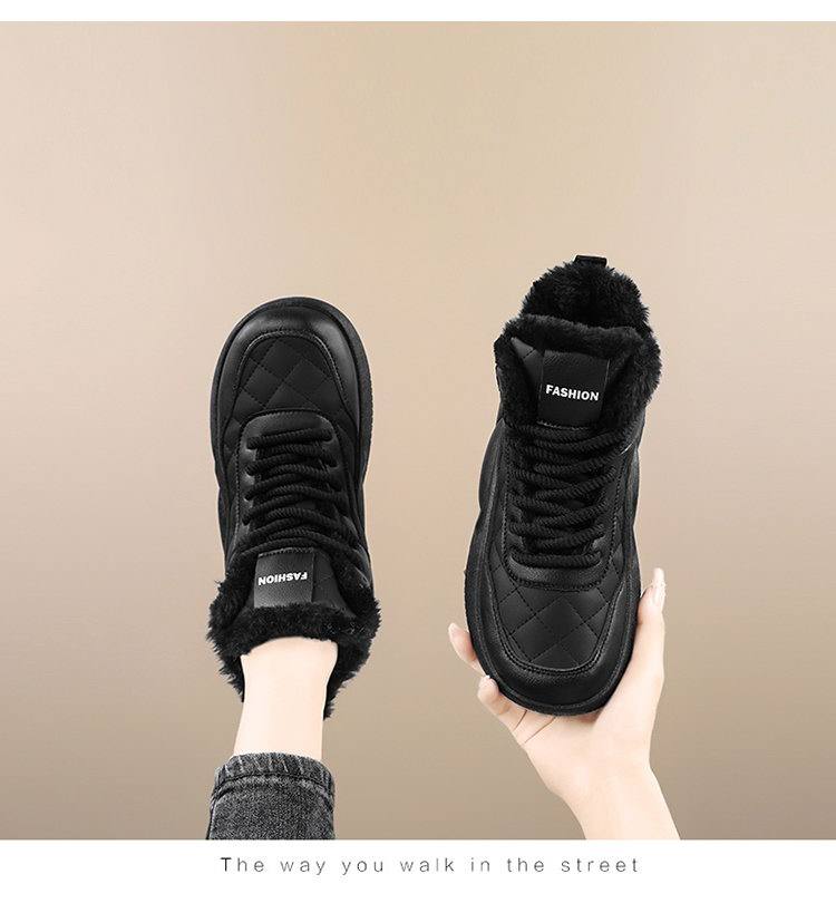 soft sole Black Large Size Sneakers for Women 2025 New Winter Fleece-Lined Warm Snow Boots Thick-Soled High-Top Short Boots