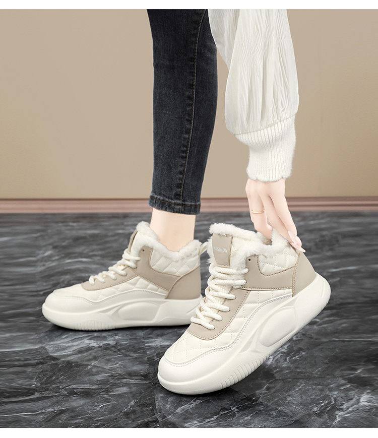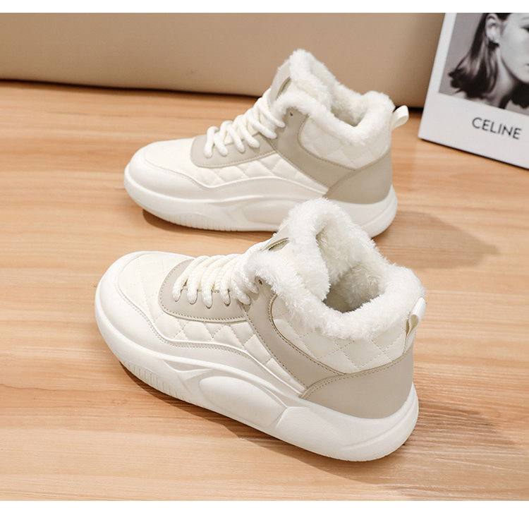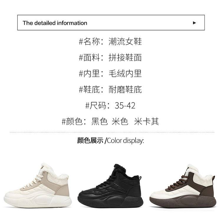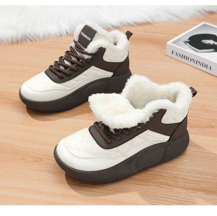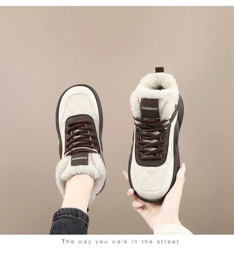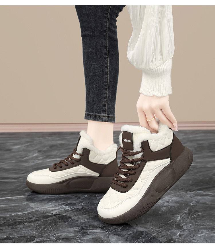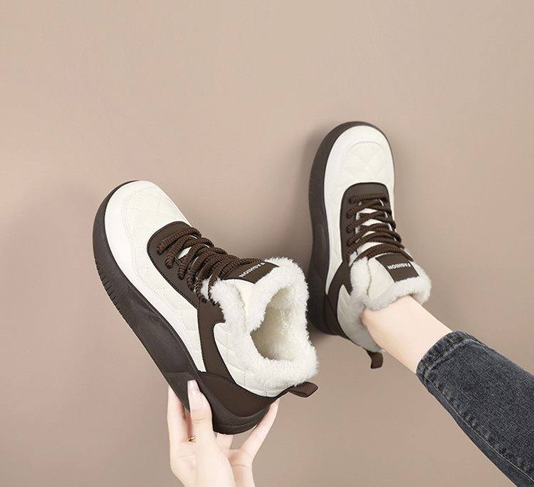 soft sole Black Large Size Sneakers for Women 2025 New Winter Fleece-Lined Warm Snow Boots Thick-Soled High-Top Short Boots