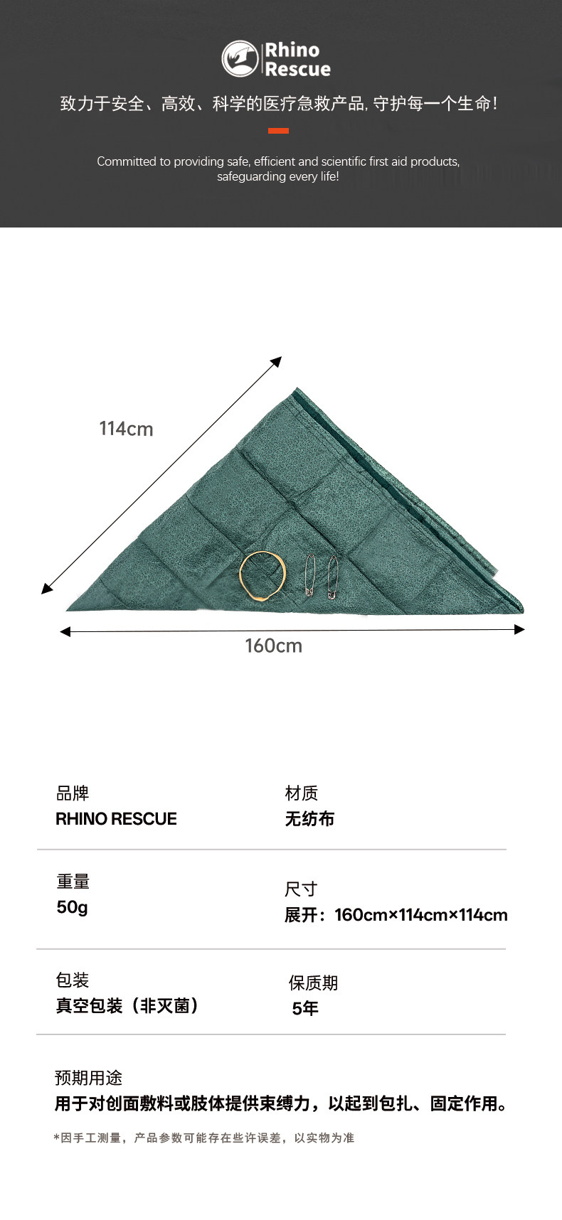 Rhino Rescue Medical Triangular Bandage Outdoor Fracture Fixation First Aid Professional Training