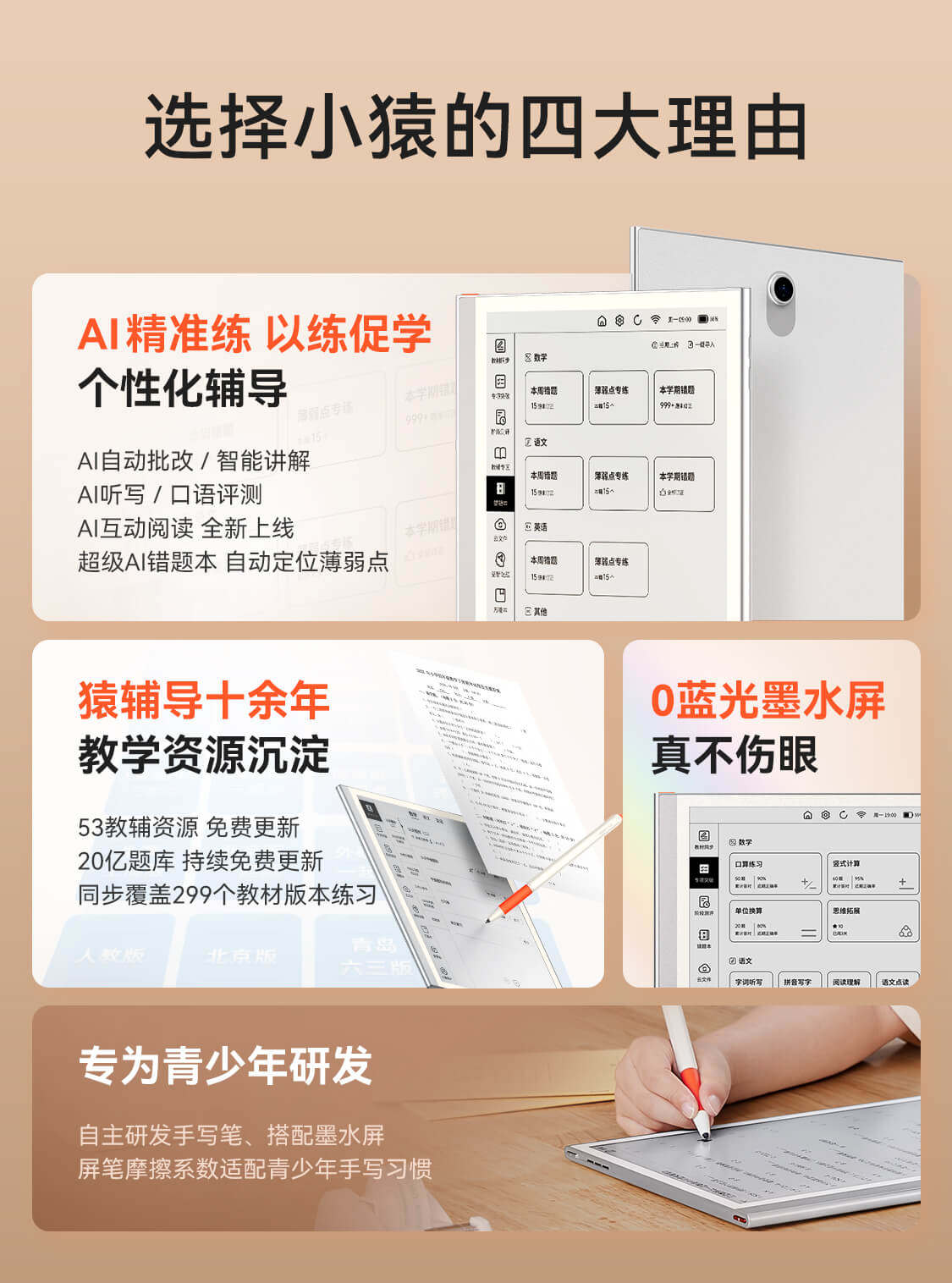 Little Ape Learning Machine Ape Tutor Ink Screen Eye Protection Student Tablet Computer Primary and Middle School Universal Textbook Synchronized with New Curriculum Standards Learning Machine Little Ape Learning Machine