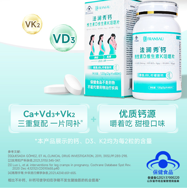 Falanxiu Calcium Citrate Tablets for Pregnant Women, Vitamin D3K2 Special for Pregnancy, Non-Carbonated Calcium Supplement for Pregnancy and Lactation