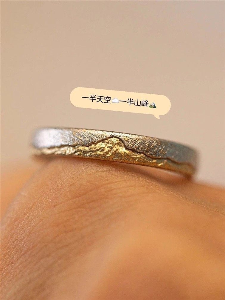 2024 New Style Rizhao Jinshan Peak Ring for Men and Women, Open Design, Fashionable, Unique, Light Luxury, High-End Couple Ring