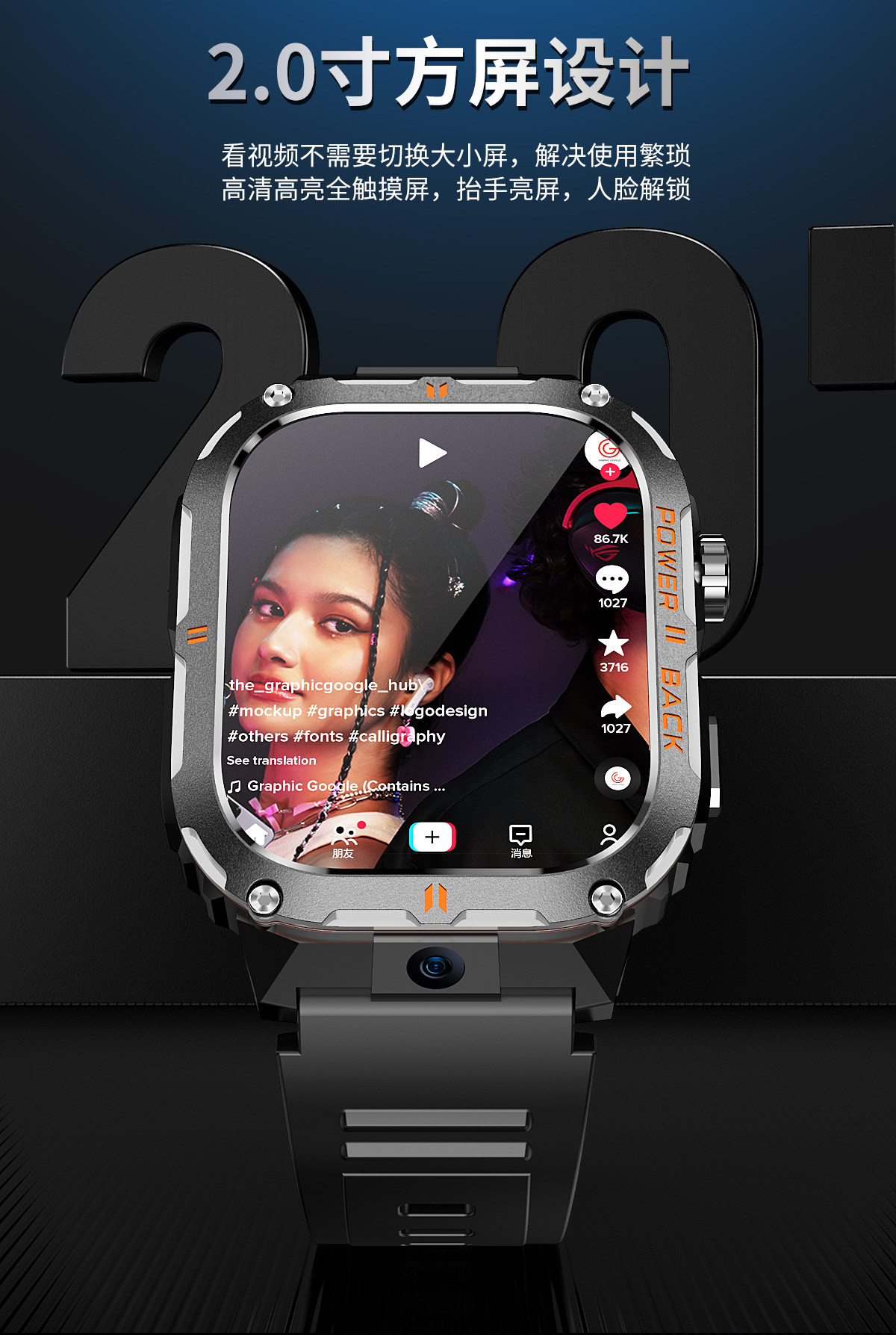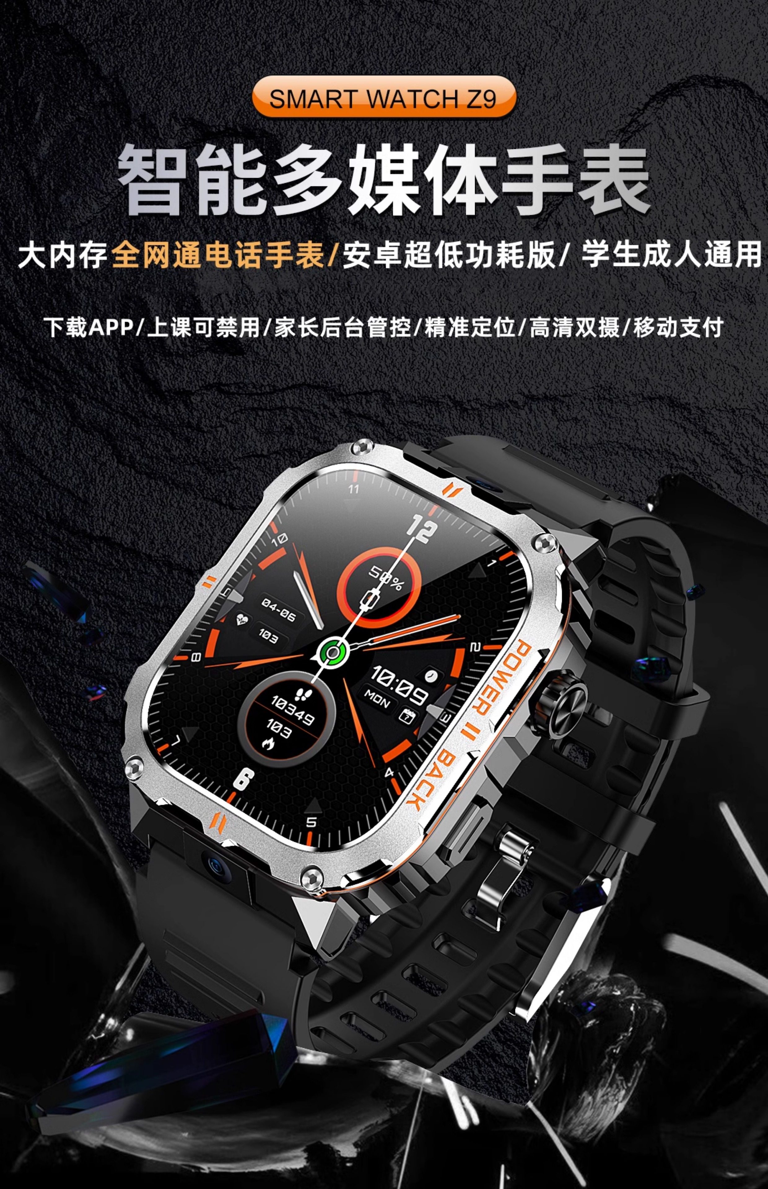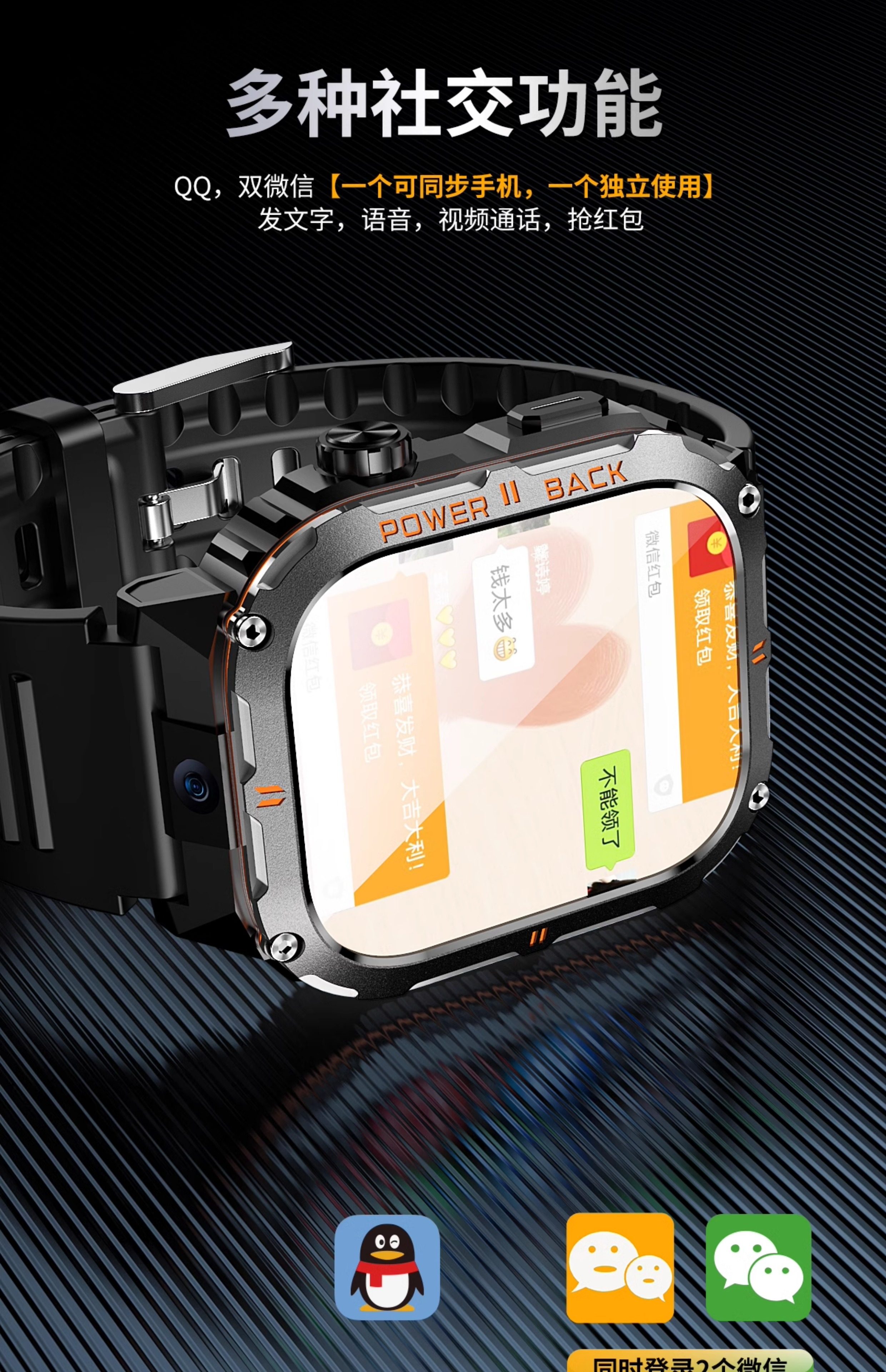 2025 New 5g All-Network Compatible Smart Rugged Phone Watch with Card Slot for Adults, Men and Women, Suitable for Students, Middle and High School Students, Heart Rate, Blood Pressure, Blood Oxygen Monitoring, Multifunctional, High-Definition Photo and Video Recording, Sports Bracelet