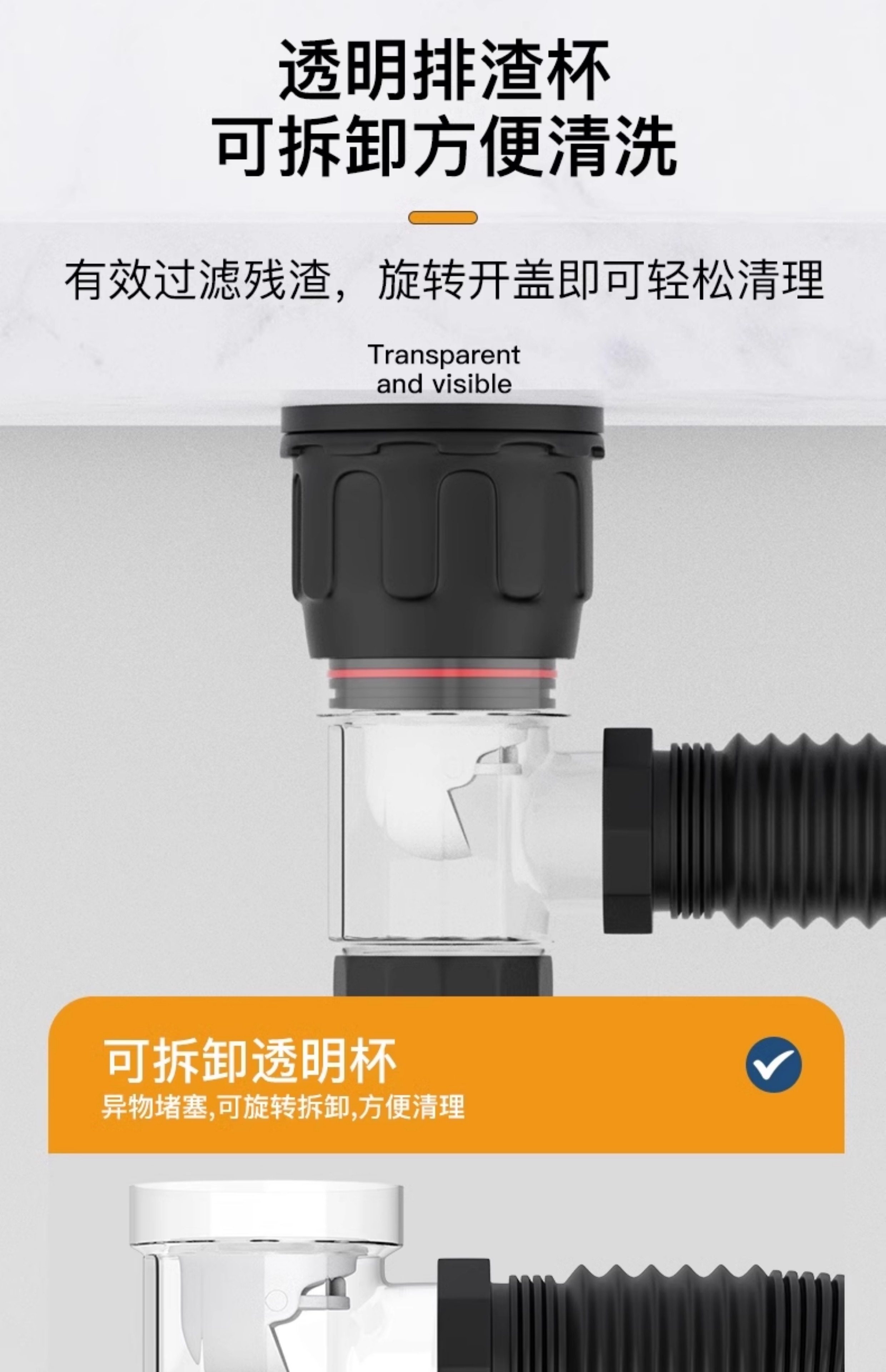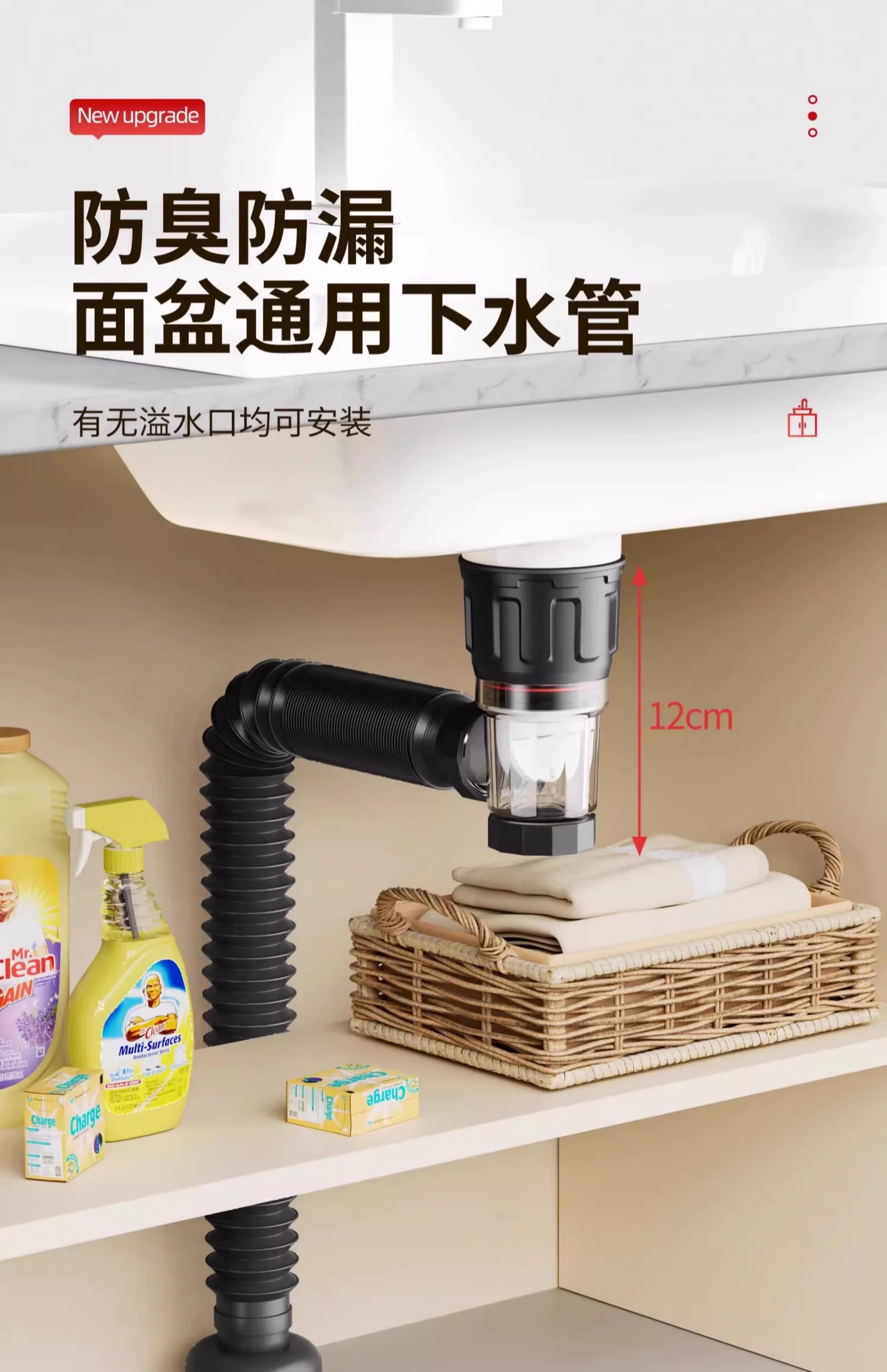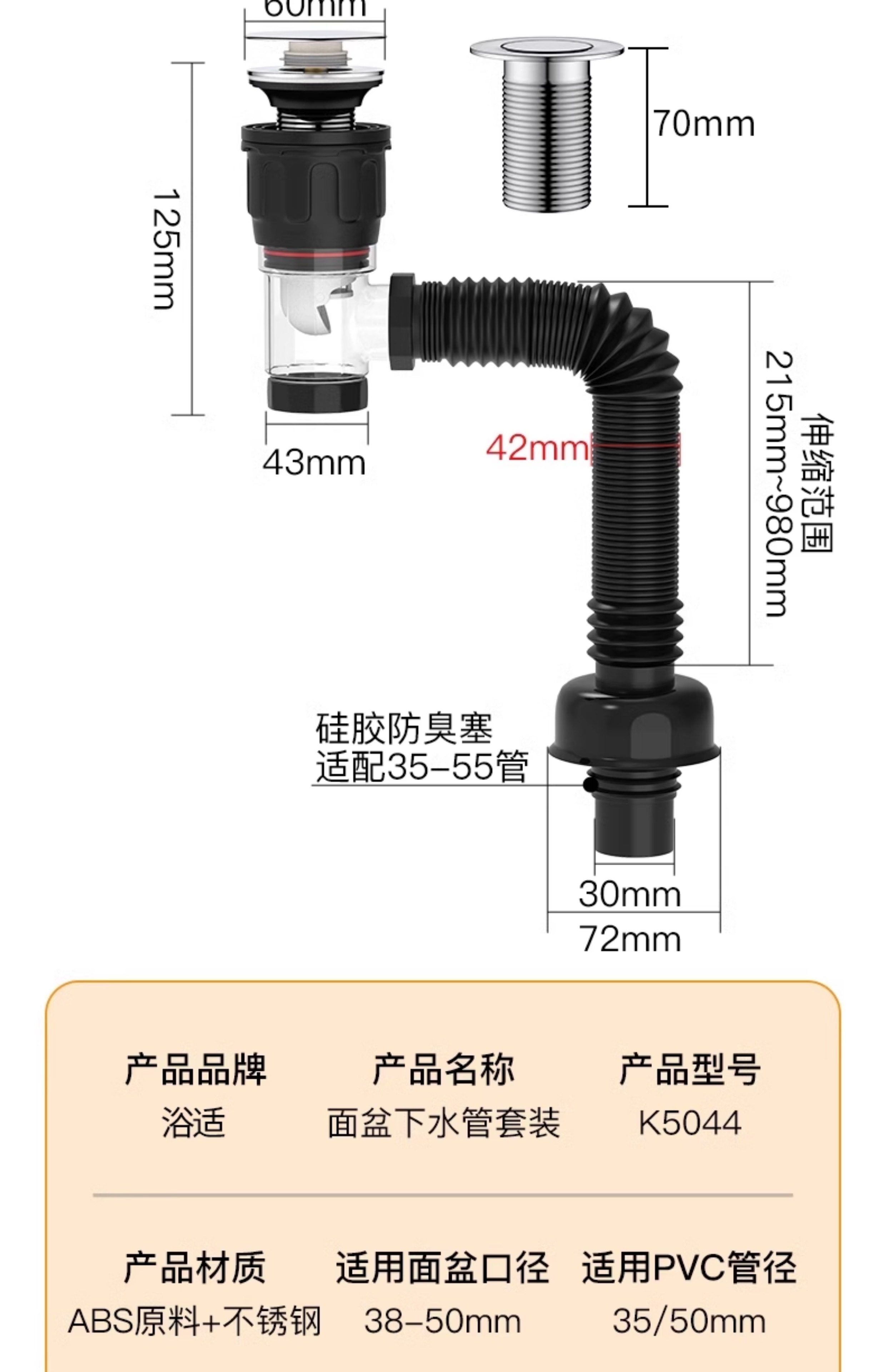 Washbasin Drain Pipe Anti-Odor Leak-Proof Plug Wash Basin Under-Counter Basin Accessories Space-Saving Drain Device