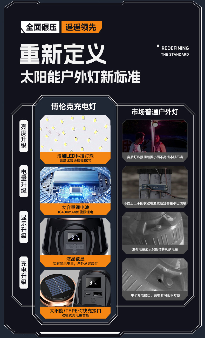Solar Rechargeable Light Bulb for Street Stalls, Night Market Lights, Led Street Lights, Household Power Outage Emergency Lighting, Outdoor Camping Lights
