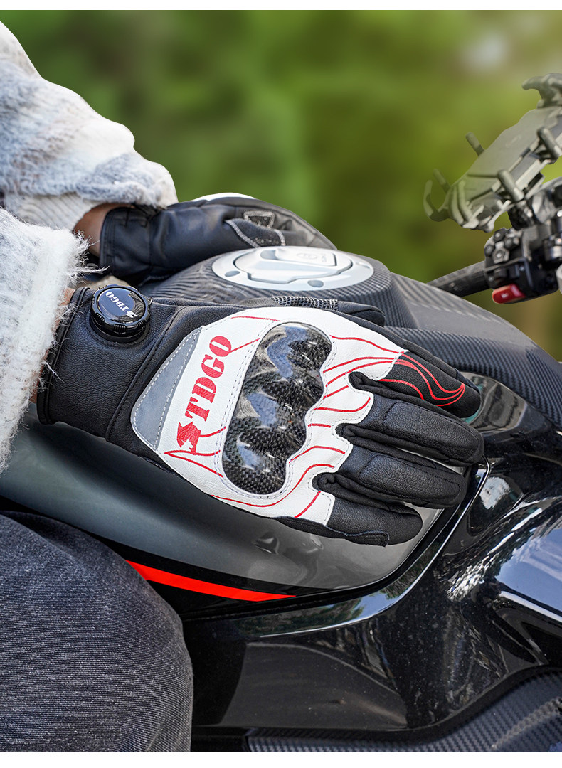 Motorcycle Riding Gloves for Men, Autumn and Winter, Carbon Fiber, Retro, Windproof, Warm, Fleece-Lined, Cold-Proof, for Men and Women