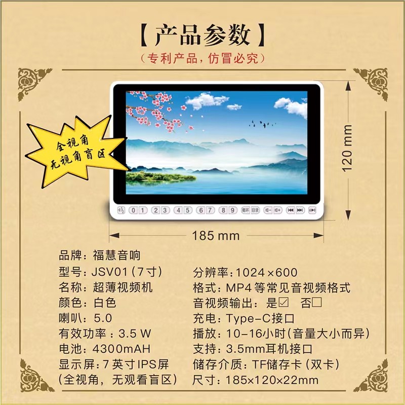 New Product Promotion: Elderly Video Player with 7inch 10inch Tf Card Slot, Ips Eye-Protection Screen, Mp4 Player, Golden Bodhi Color
