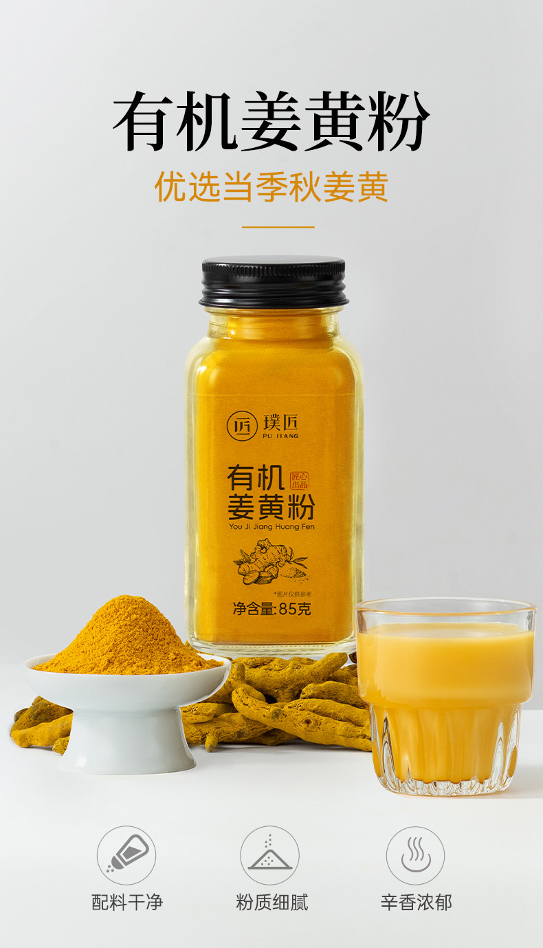 [Combo Pack] Pujiang Organic Turmeric Powder Official Flagship Store for Drinking, Coffee, Baking, and Food - 5 Bottles