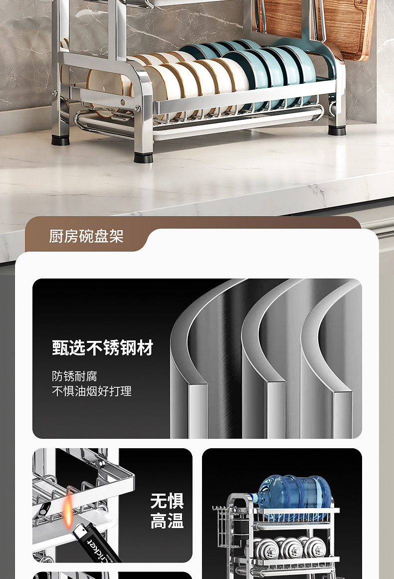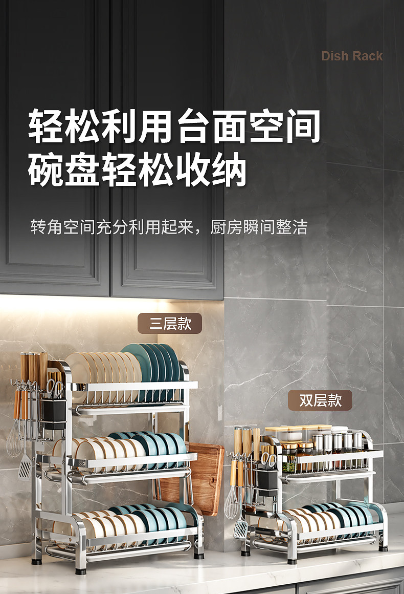 Stainless Steel Dish Drainer Storage Rack, Bowl Rack, Dish Rack, Kitchen Multi-Functional Storage Rack, Countertop Multi-Layer Spice Rack