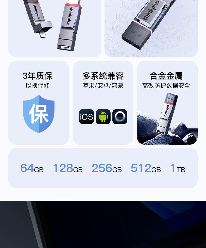 Lenovo Typec Dual-Interface Genuine USB Flash Drive Large Capacity 1t Mobile Phone and Computer Dual-Use High-Speed Usb3.0 Flash Drive 64g