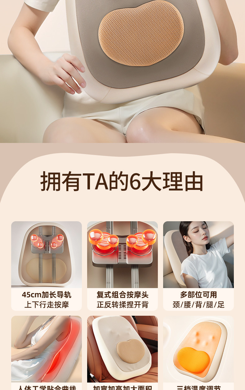 German Jiaren Waist Massager, Massage Instrument for Cervical Spine and Back, Fully Automatic Kneading Massage Cushion