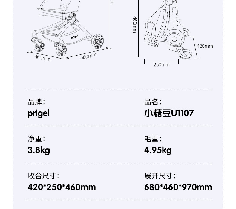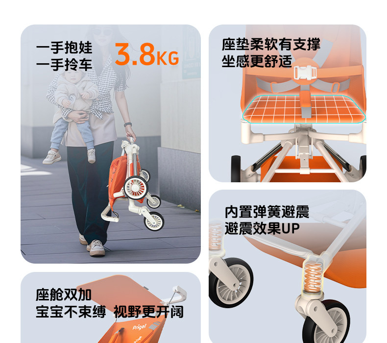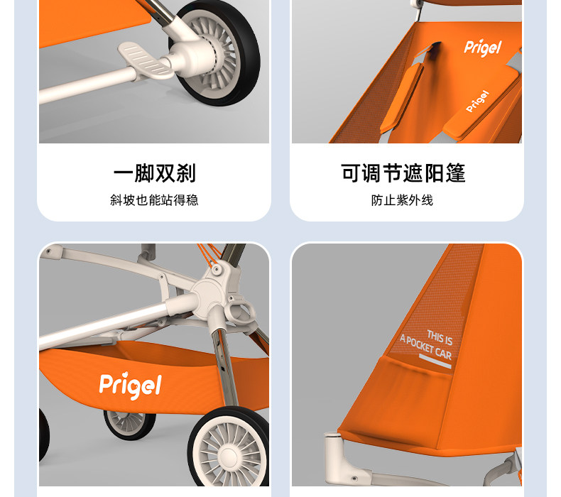 Prigel Pocket Stroller, Lightweight and Easy to Fold, a Great Tool for Walking with Babies and Children, Ultra-Lightweight