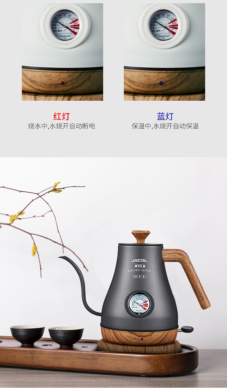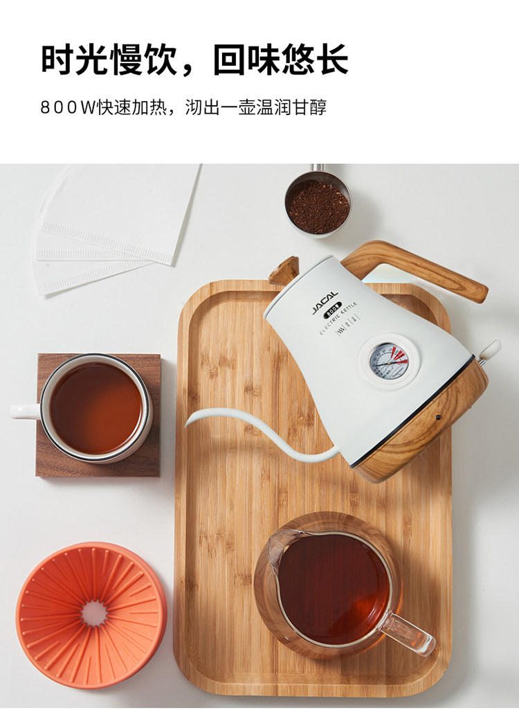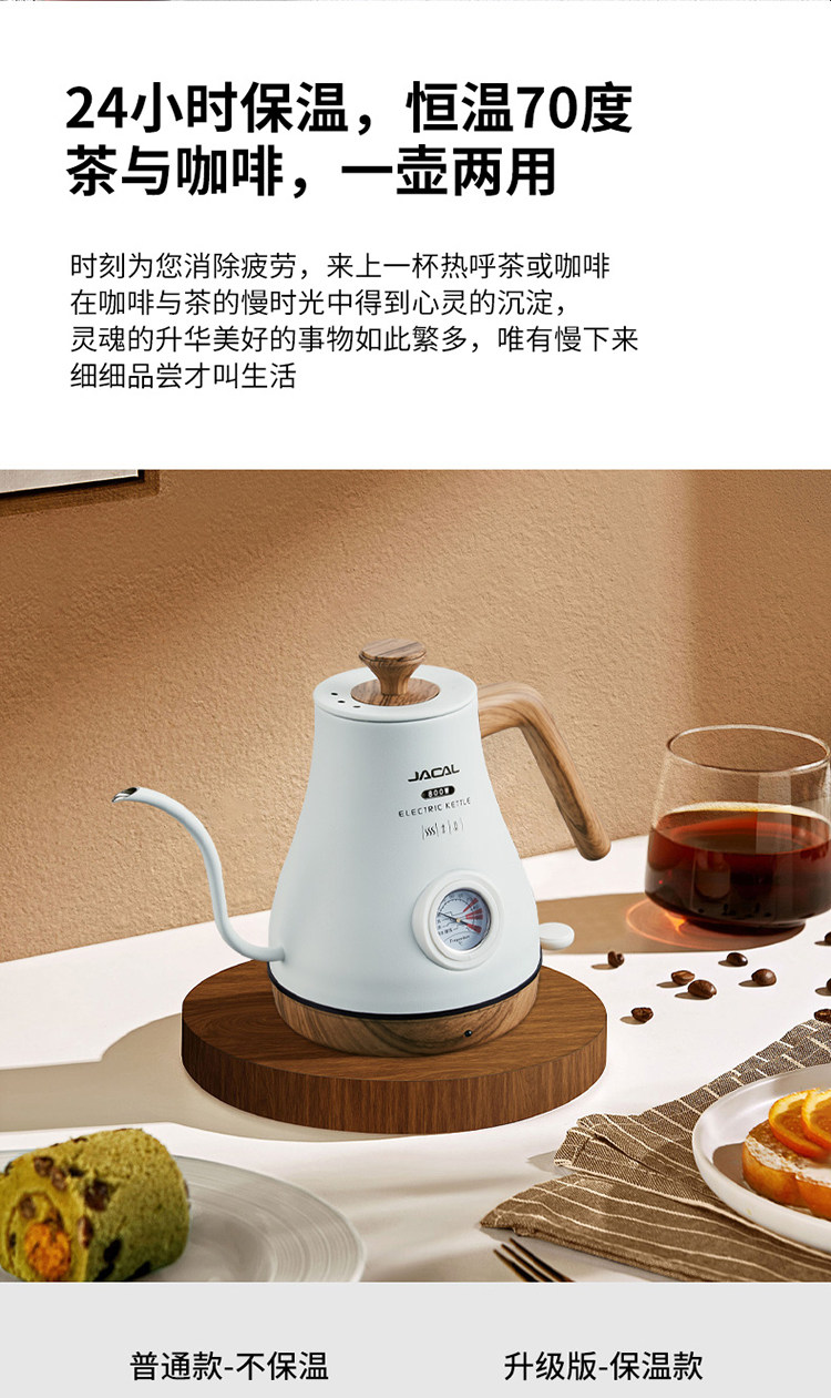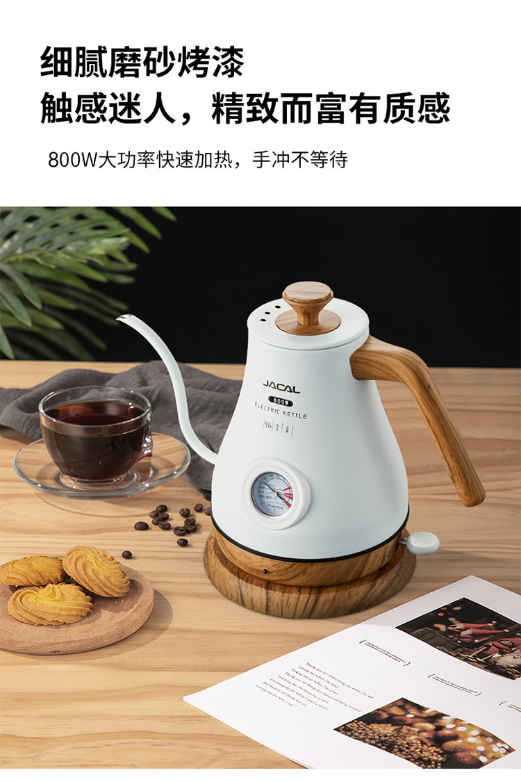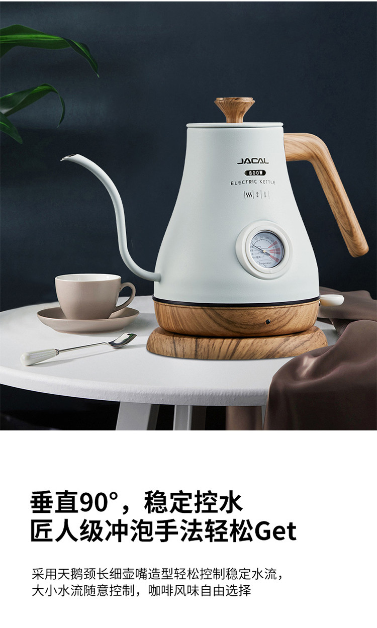 Jacal Long Mouth Hand Brewing Water Kettle Insulated Coffee Pot Electric Water Kettle Stainless Steel Thin Mouth Electric Tea Water Kettle Tea Water Kettle